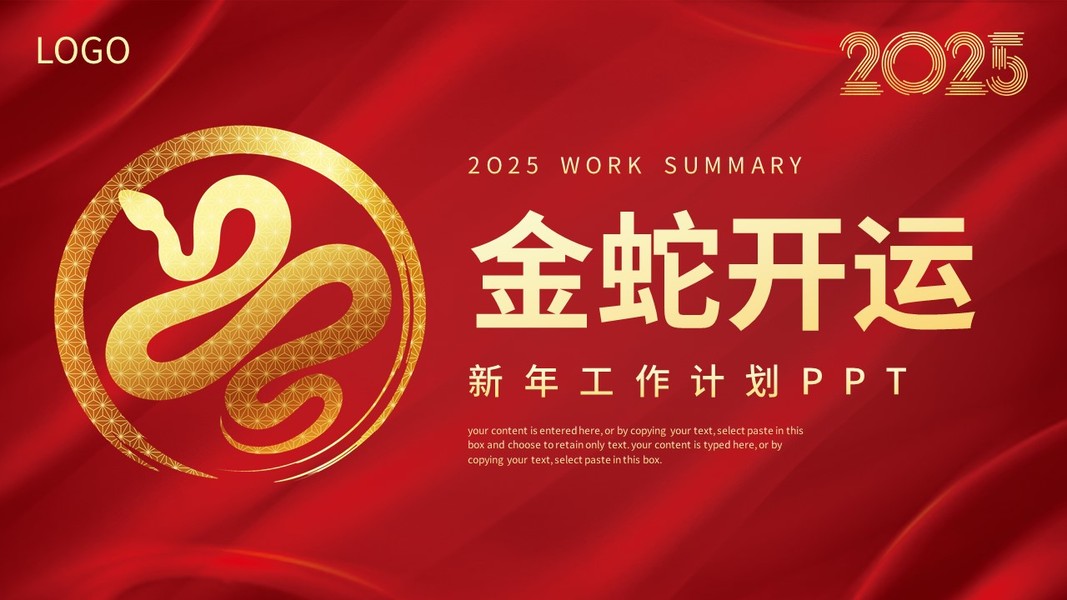 红色大气2025金蛇开运新年工作计划PPT模板