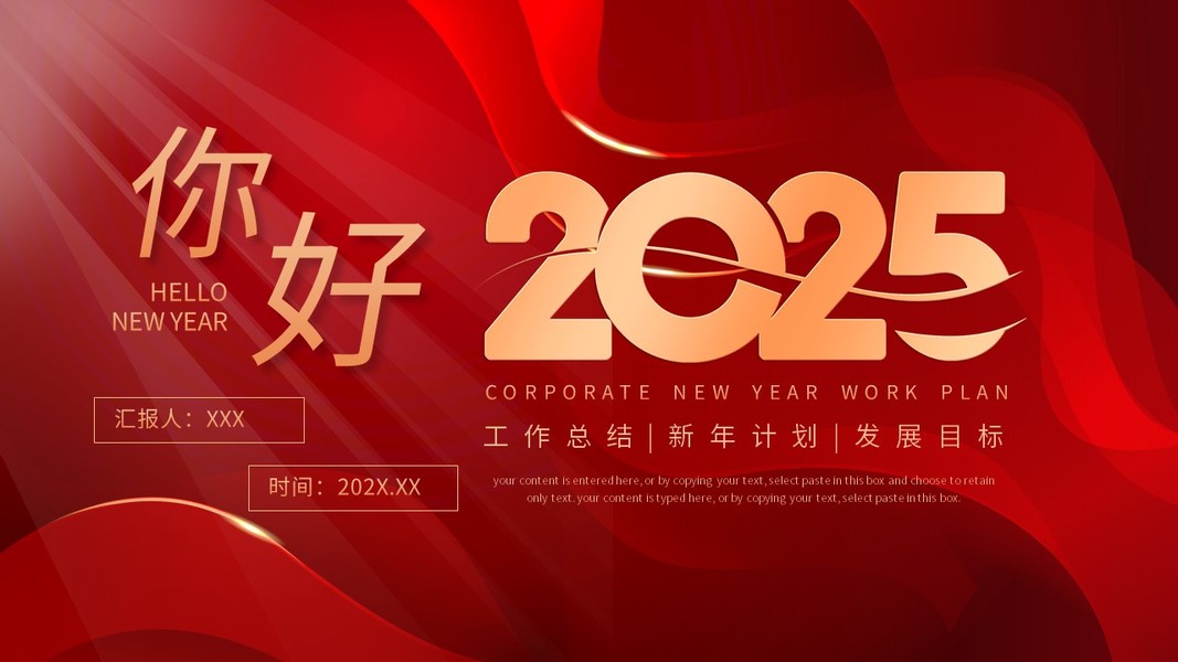 高端红色你好2025工作总结新年计划PPT模板