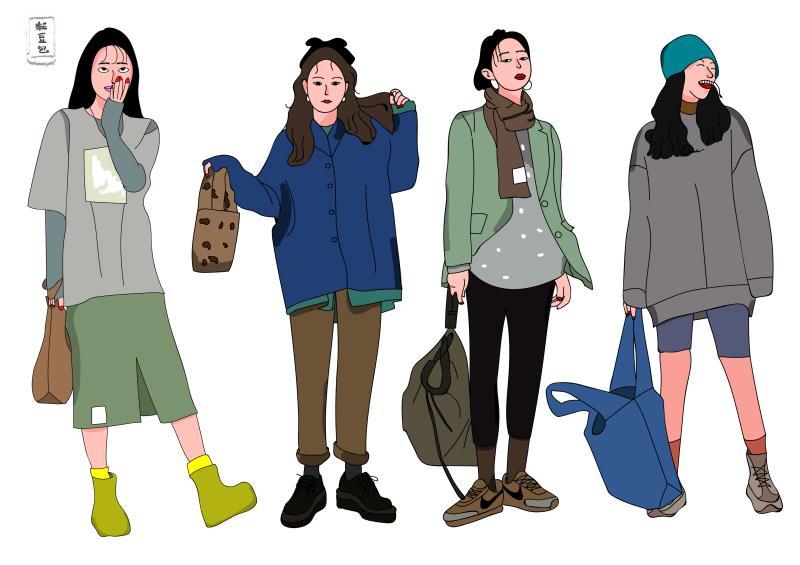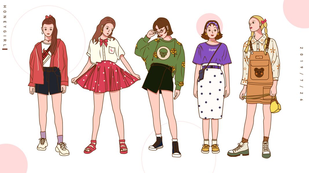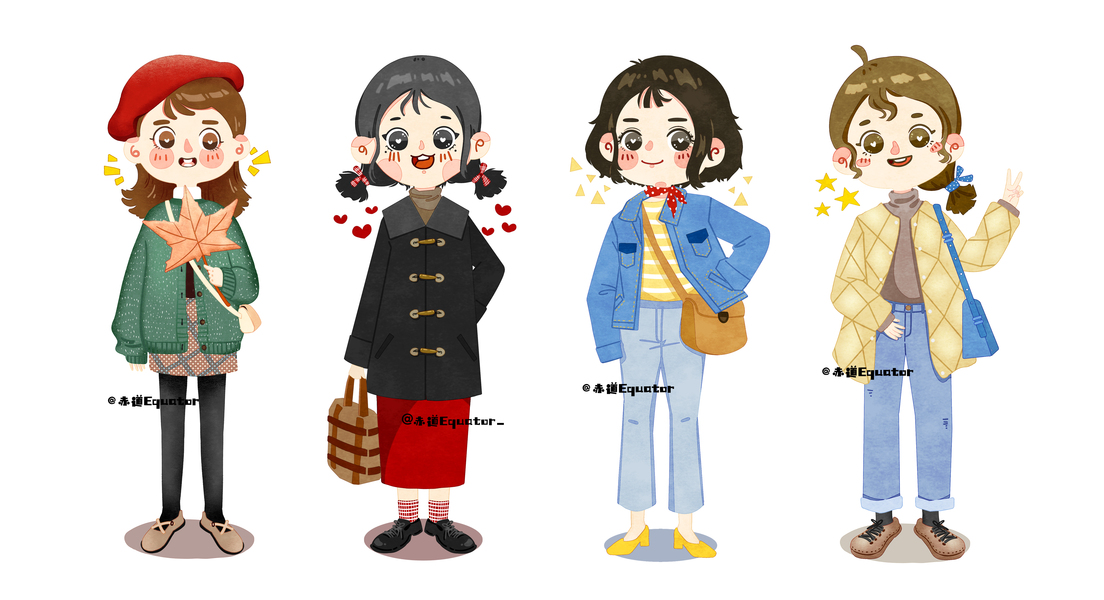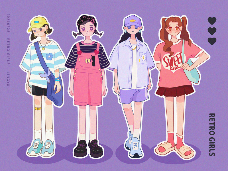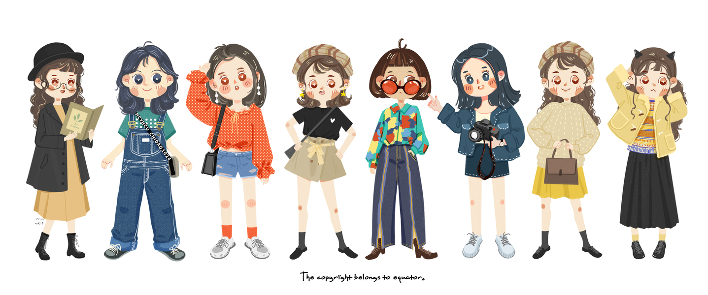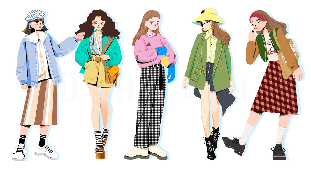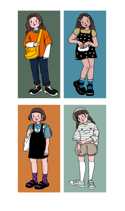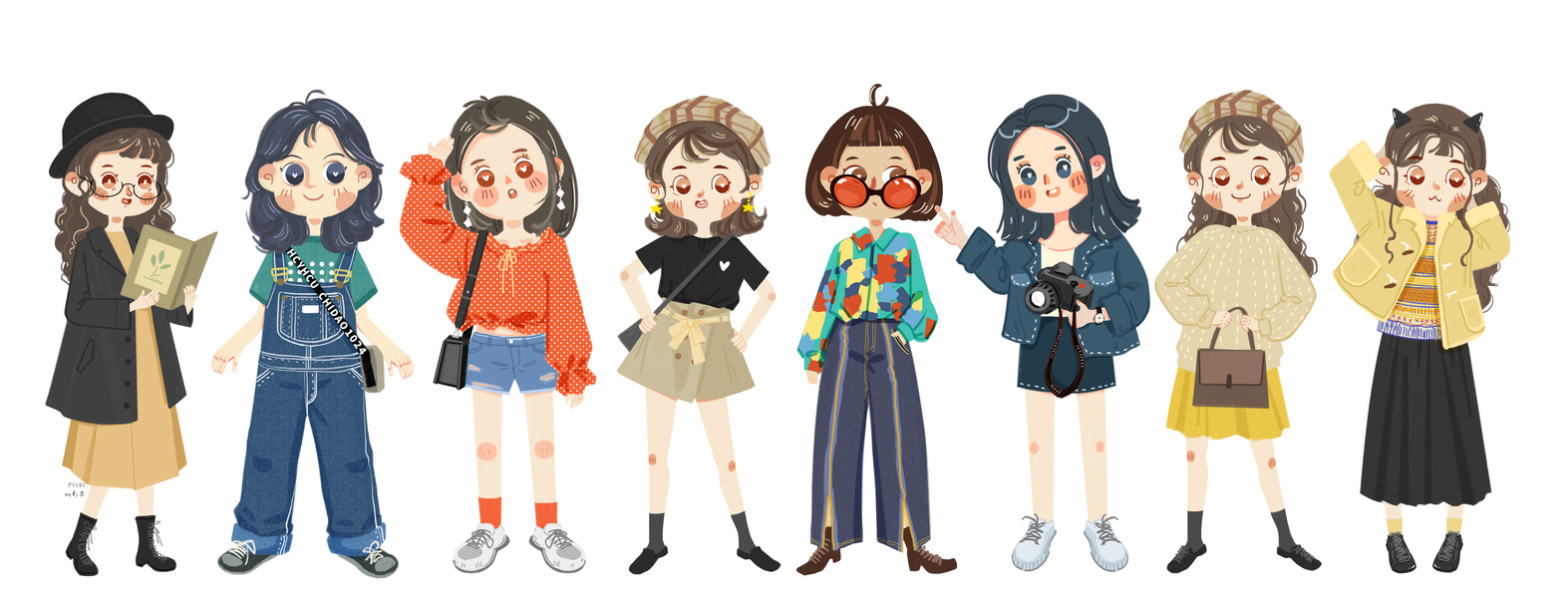 OOTD扁平穿搭插画小人《Lucky Girls》