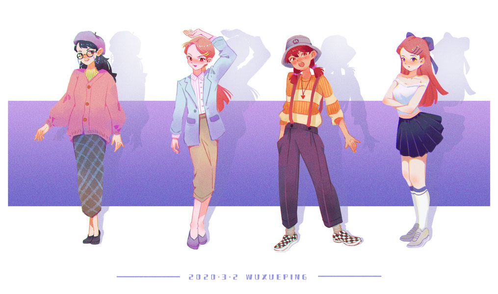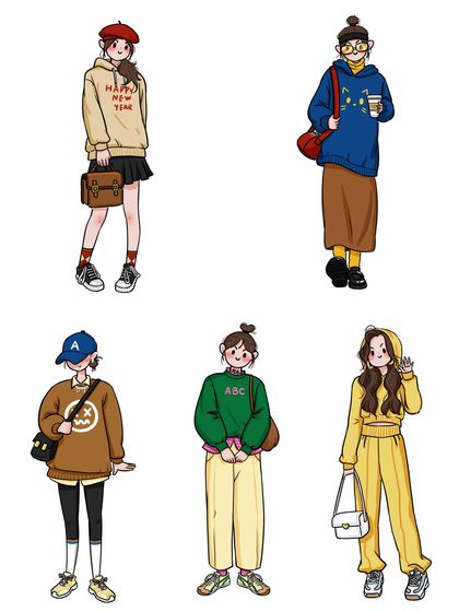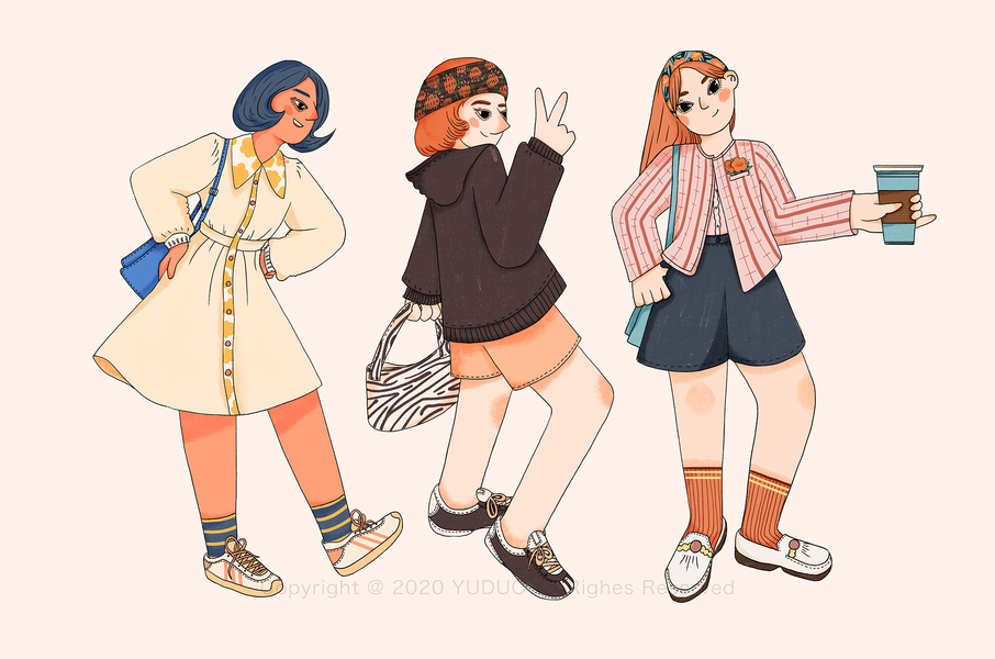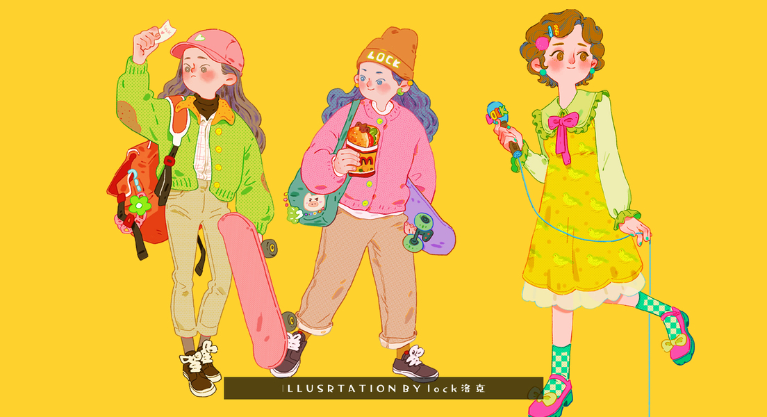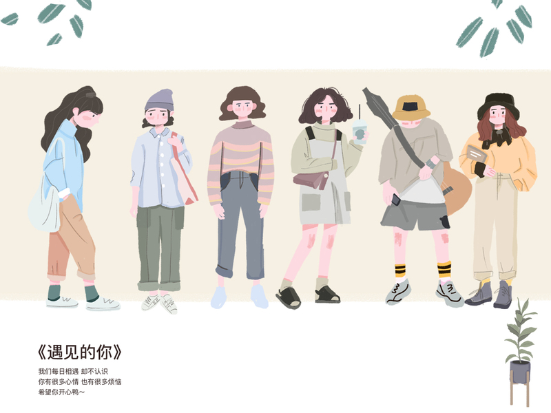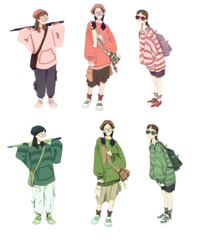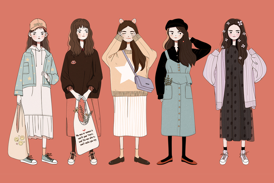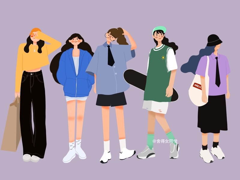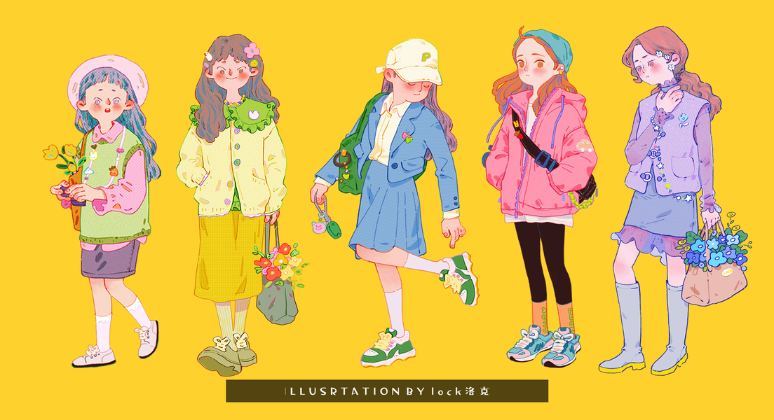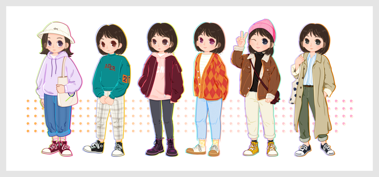 OOTD扁平穿搭插画小人《Lucky Girls》