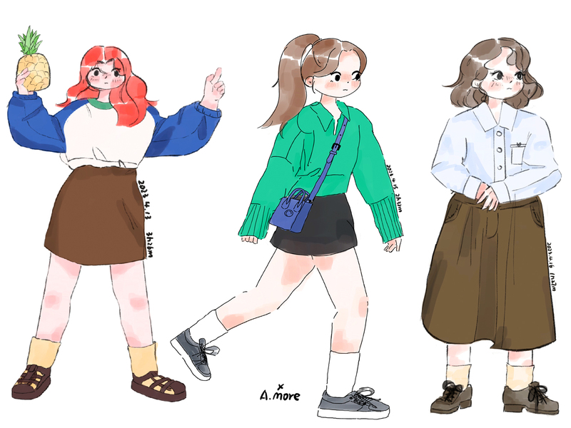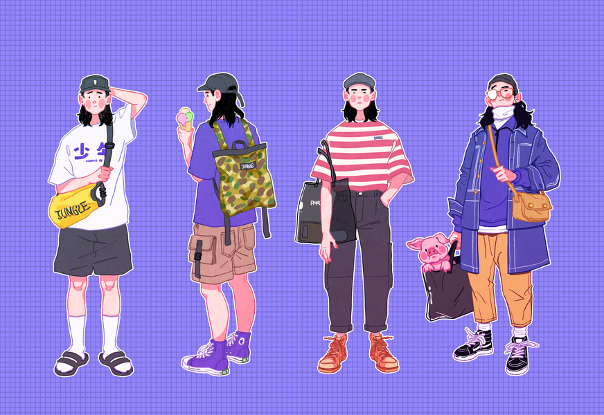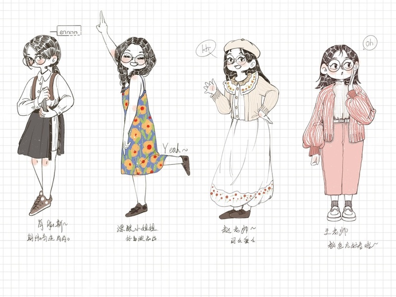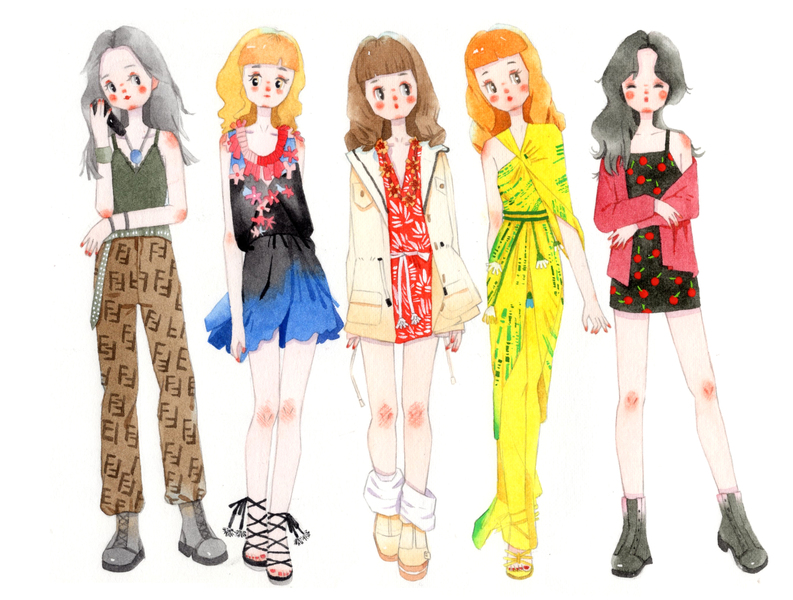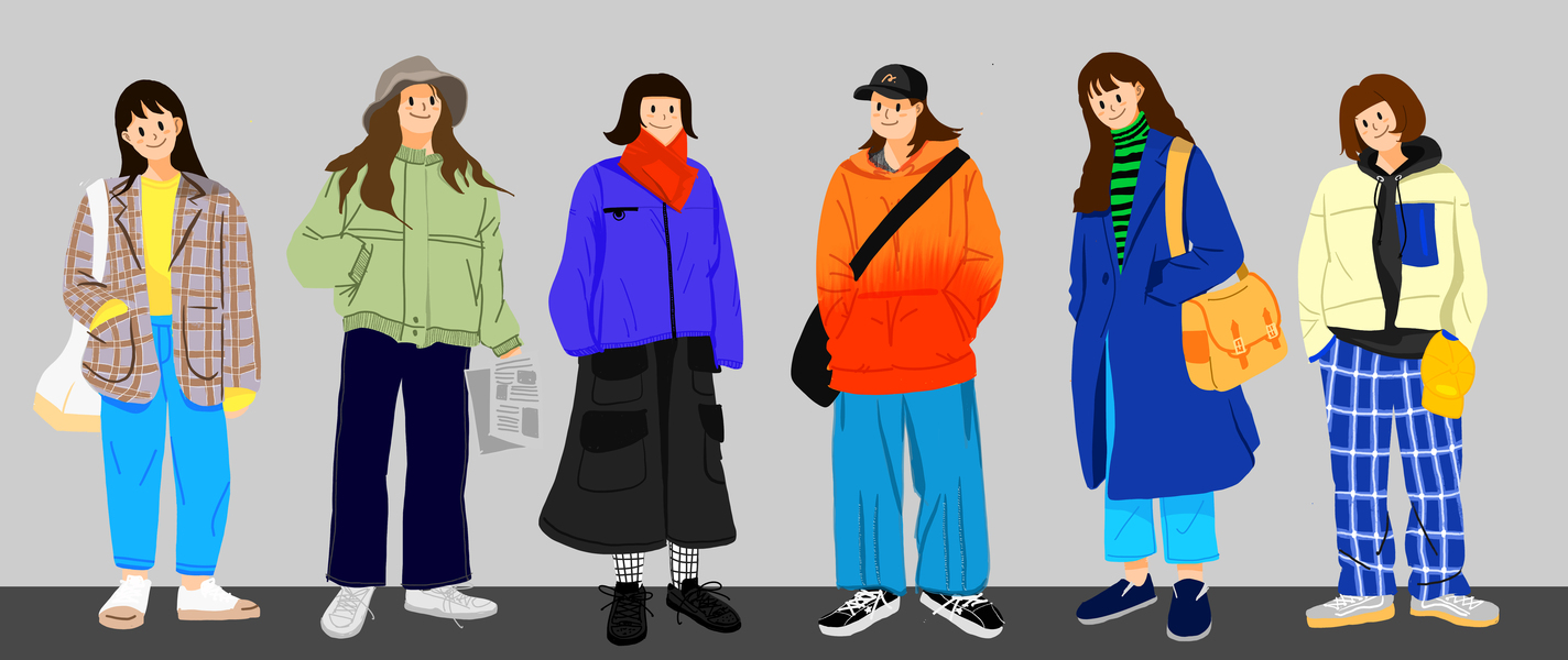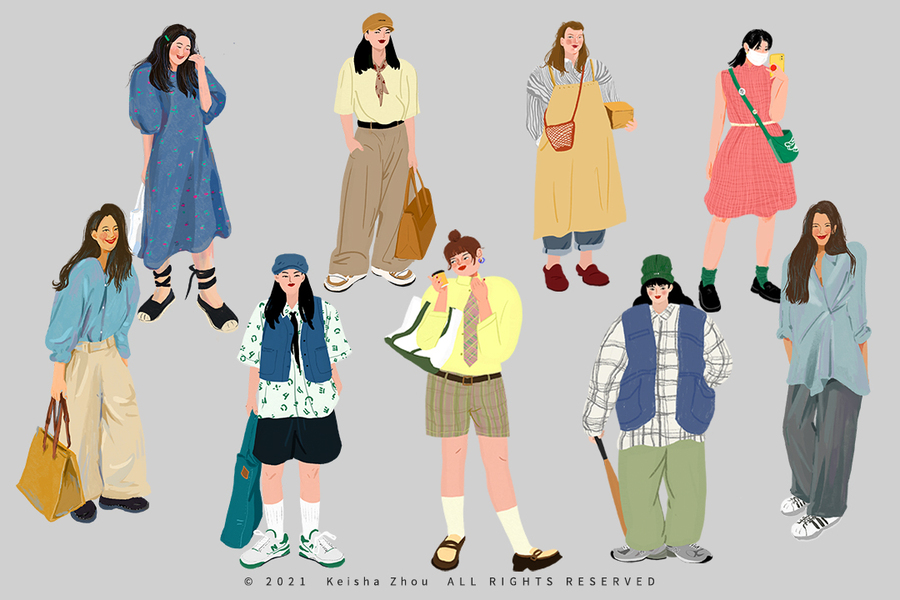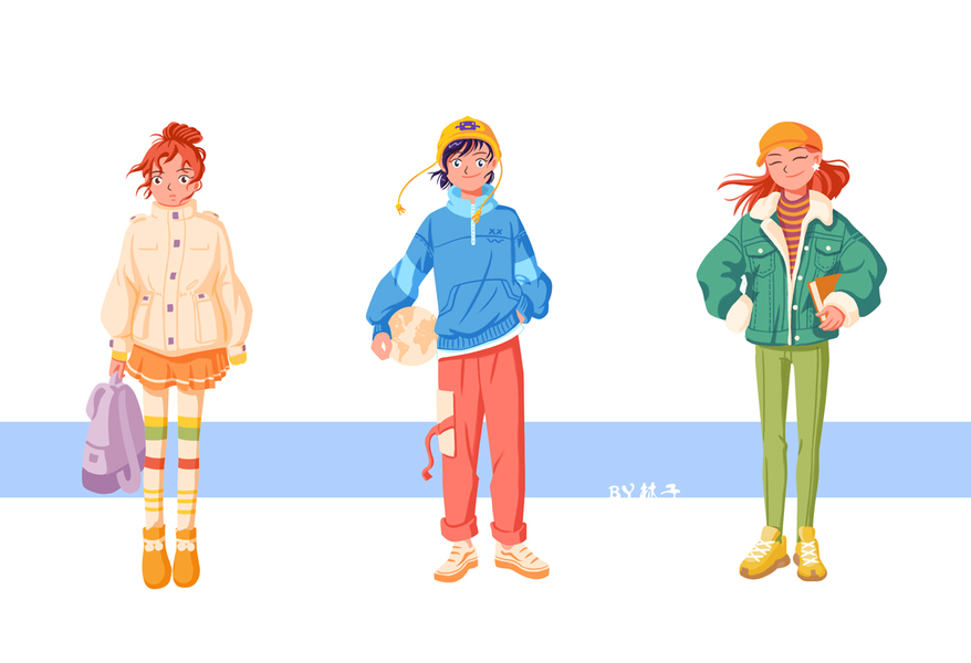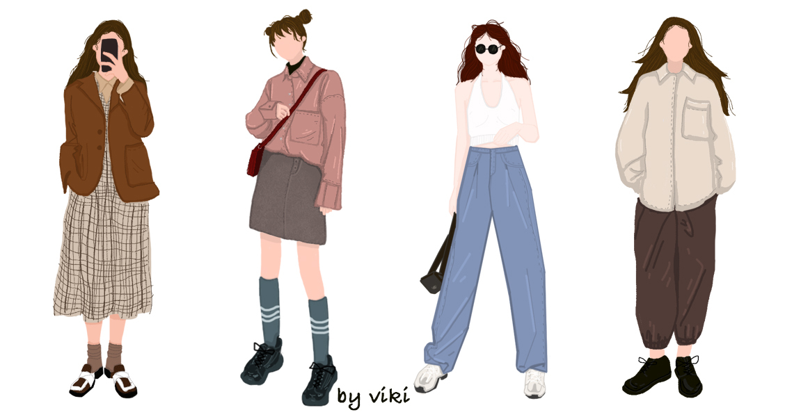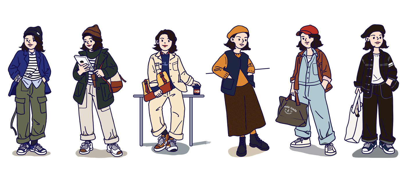 OOTD扁平穿搭插画小人《Lucky Girls》