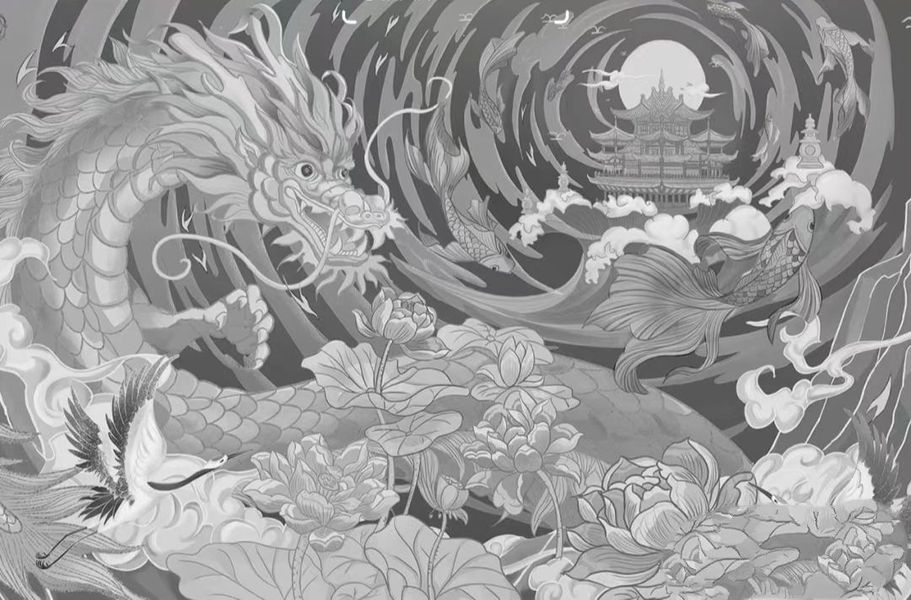 2023端午节礼盒包装插画/粽享端午/遇龙