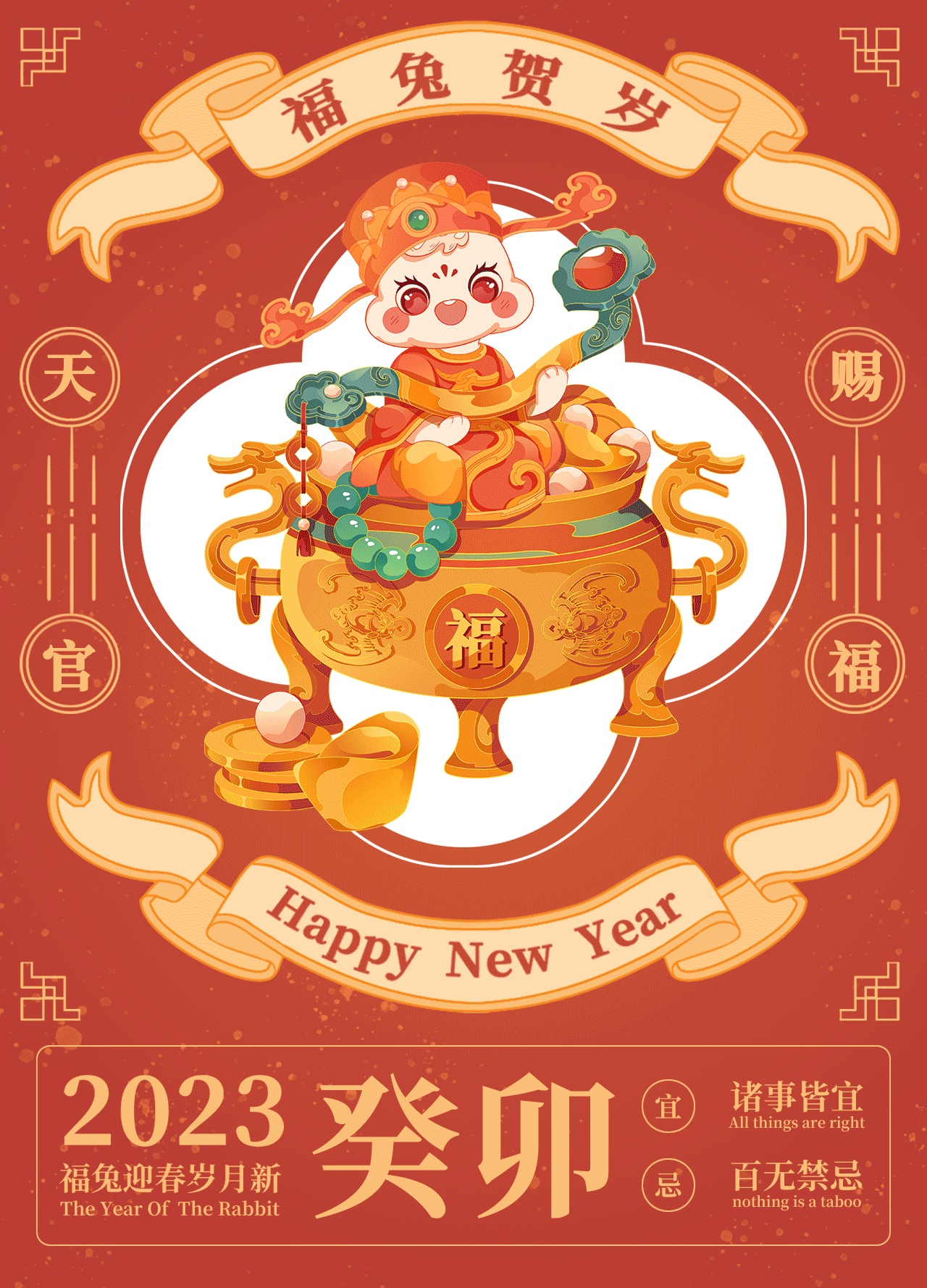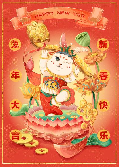 《福兔迎春辞旧岁》兔年生肖IP主题国风系列插画