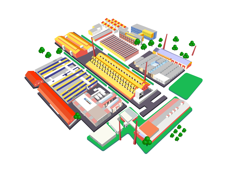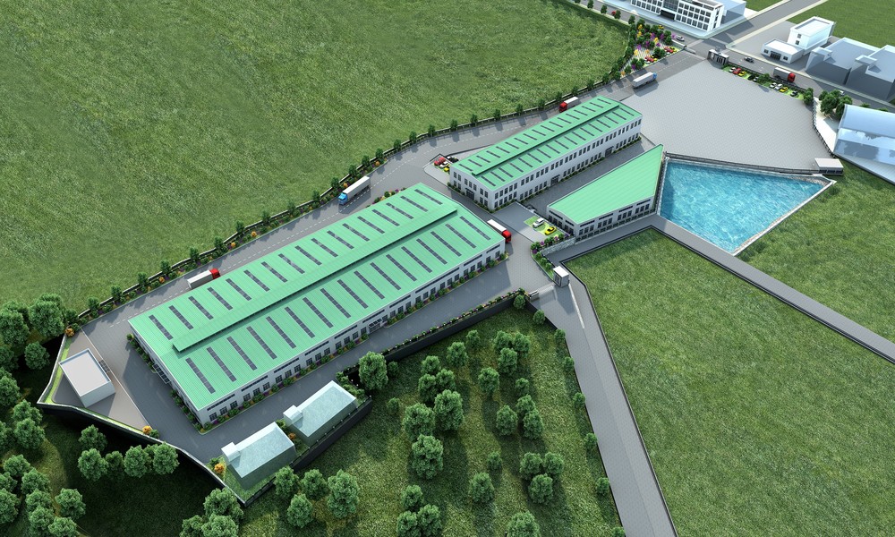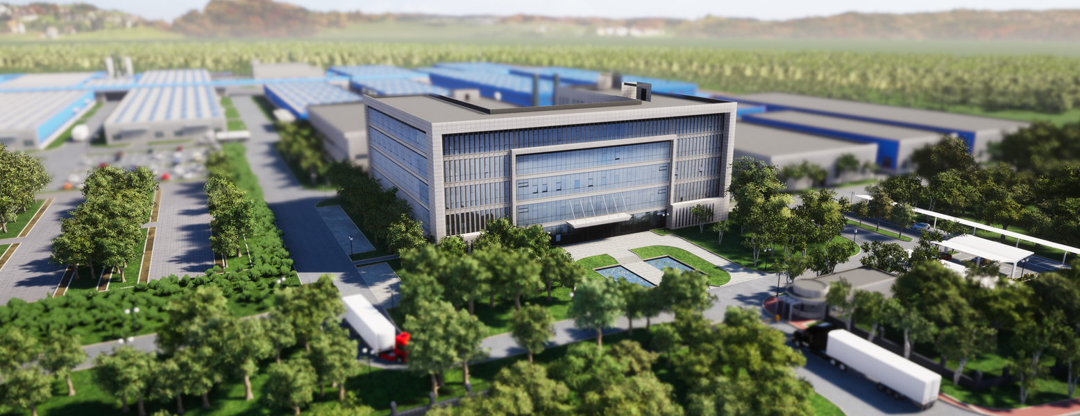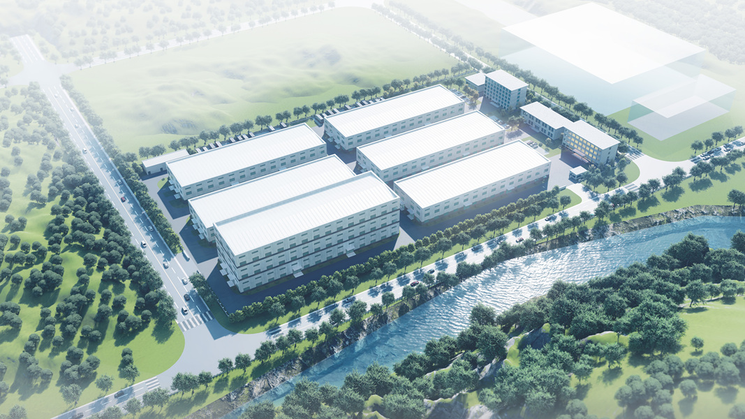 家乡镇上规划的食品加工厂园区鸟瞰效果图