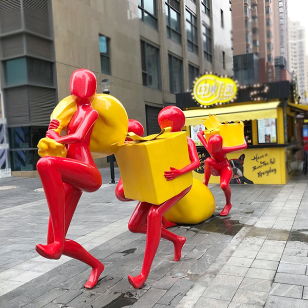 玻璃钢购物人物雕塑 商业街步行街抽象人群礼物盒美陈