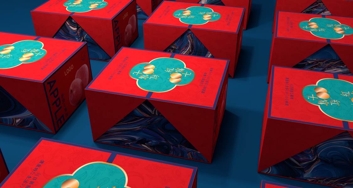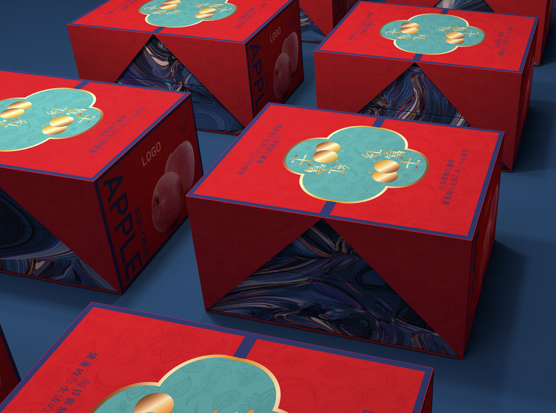 红富士苹果礼盒、高原红苹果礼盒、红色水果通用礼盒