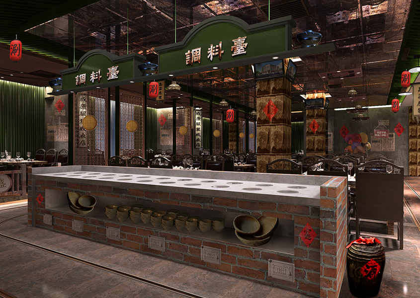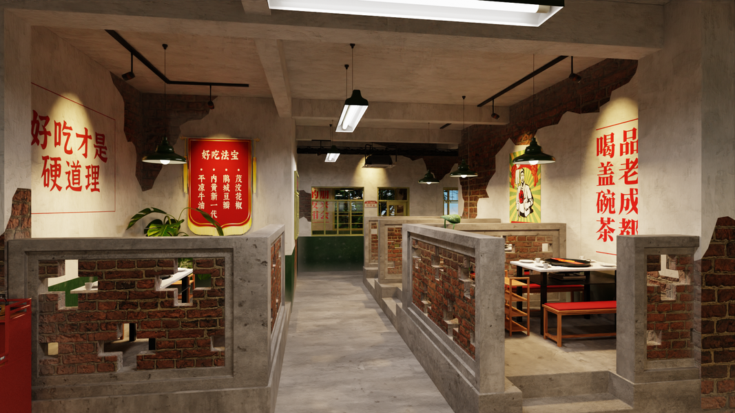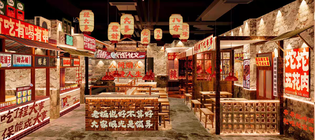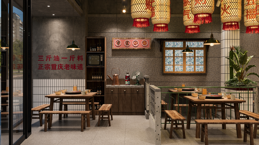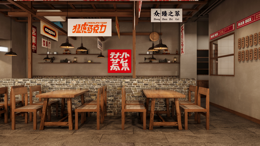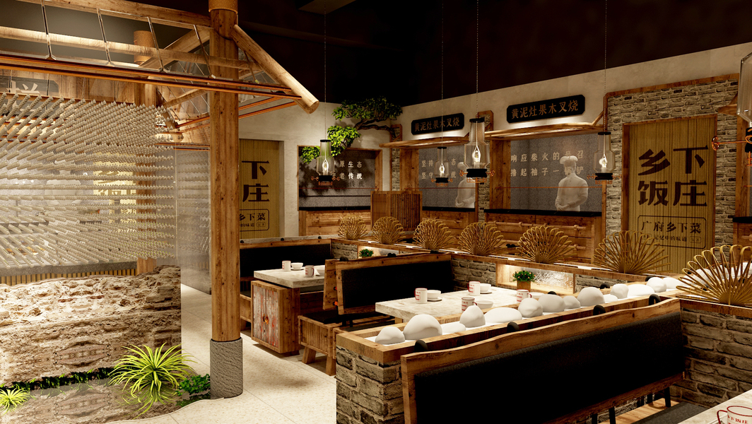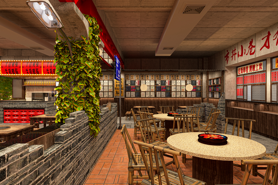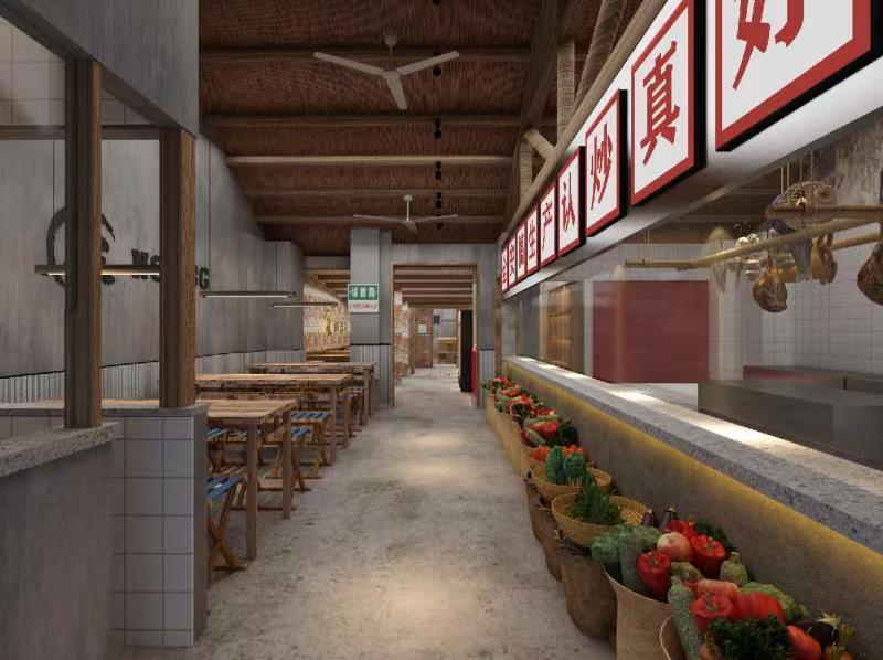 复古市集感--小溪边酸菜鱼餐饮店空间设计