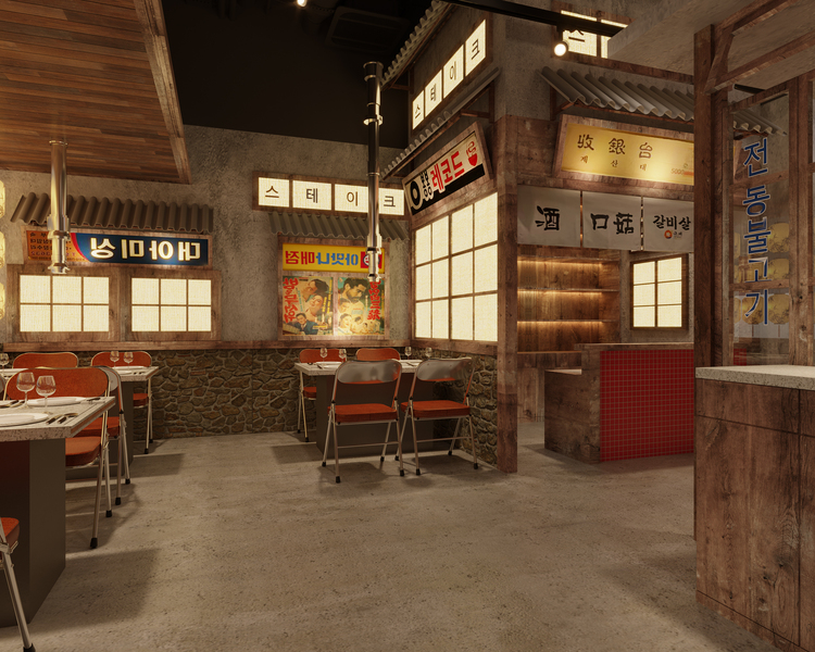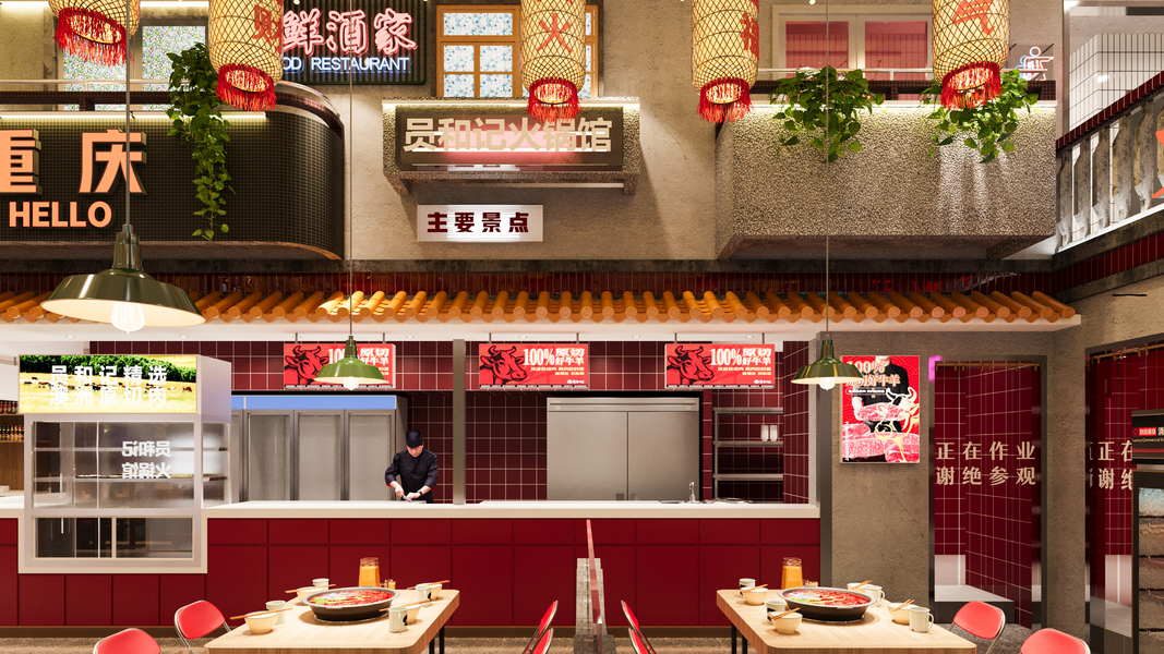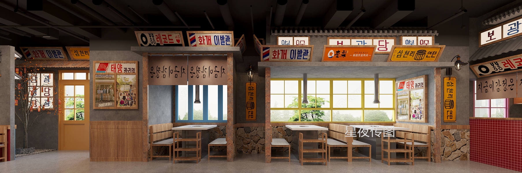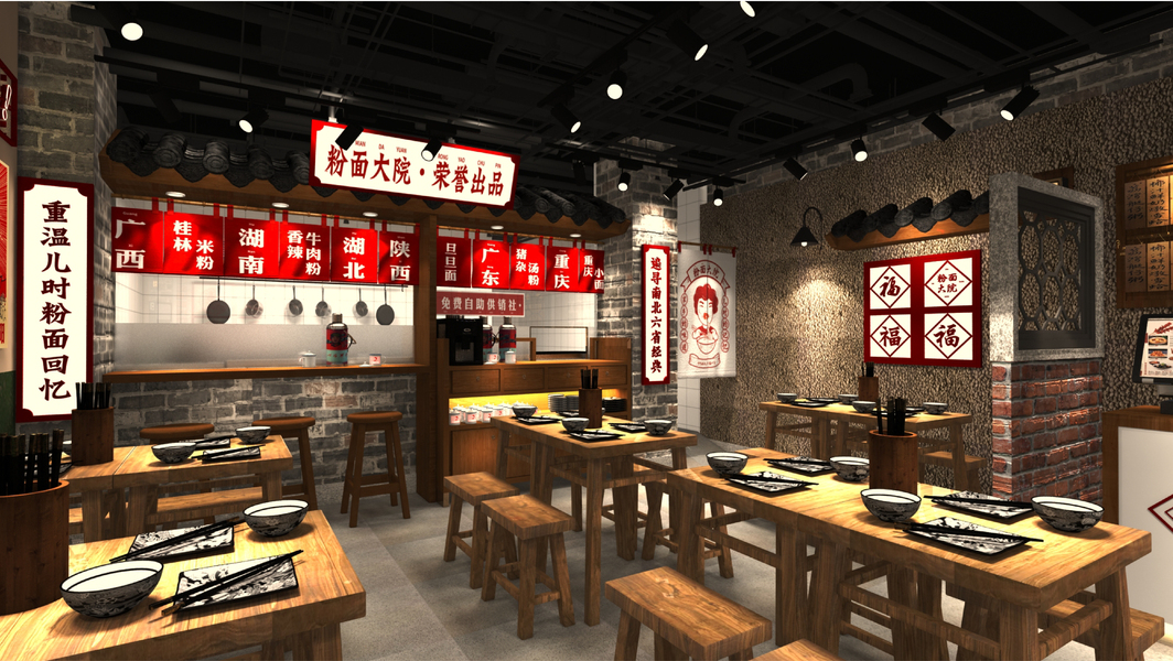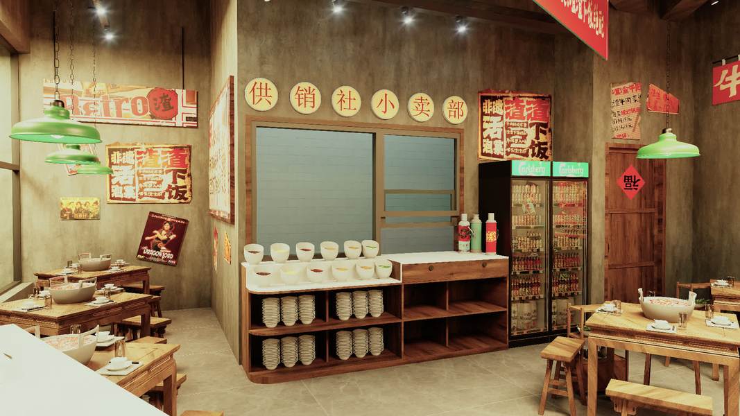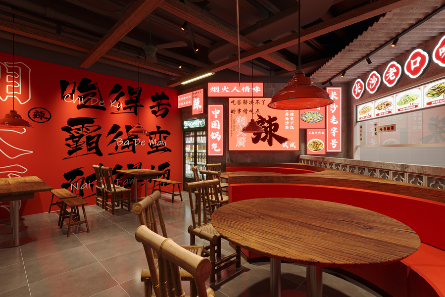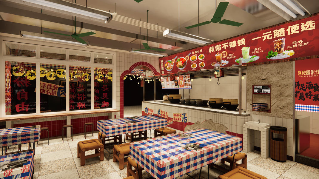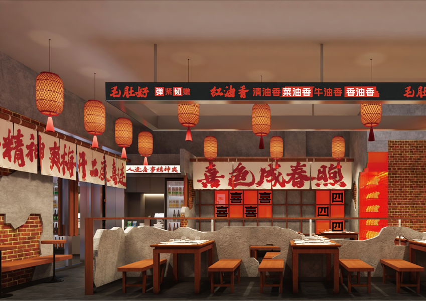 复古市集感--小溪边酸菜鱼餐饮店空间设计