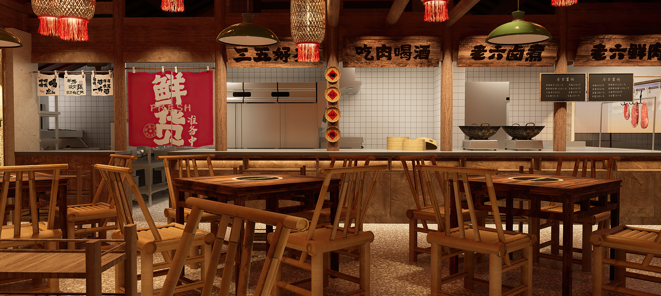 烤肉店效果图设计丨喜欢啤酒烧烤