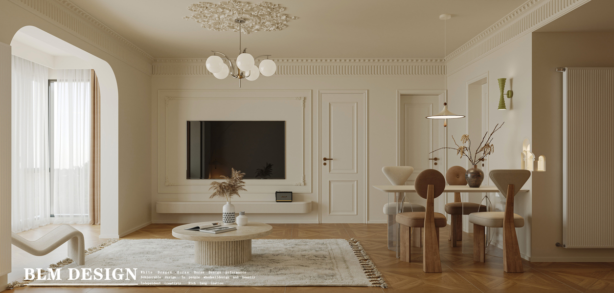 几何空间视觉表现 | 万科朗拾森屿法式奶油风客餐厅