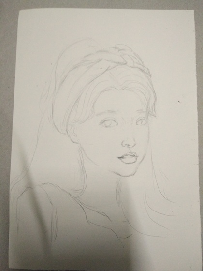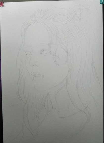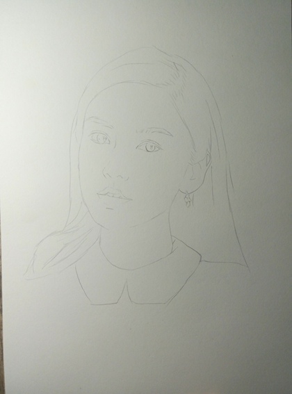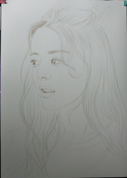 彩铅色粉人像课示范画《小萝莉》