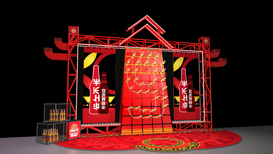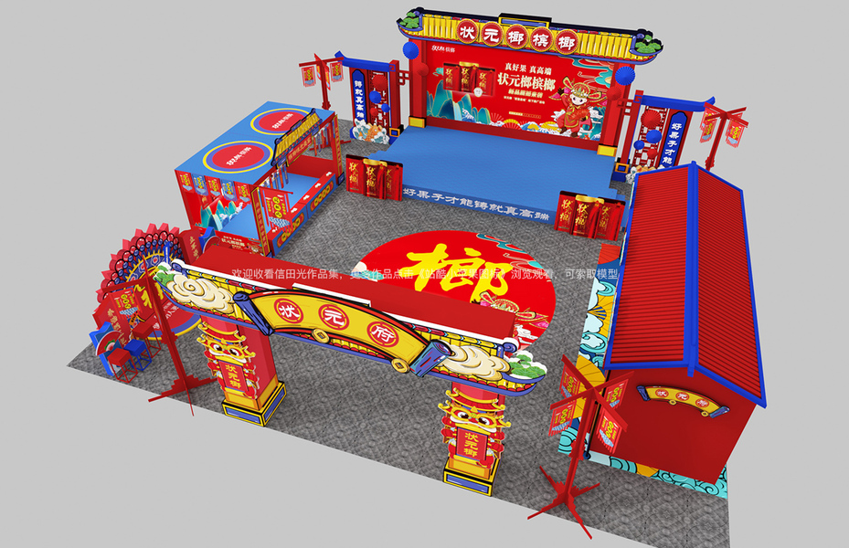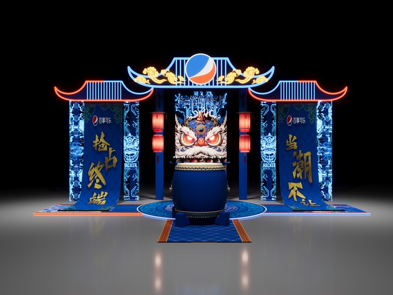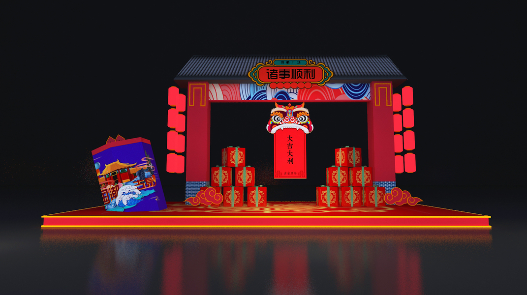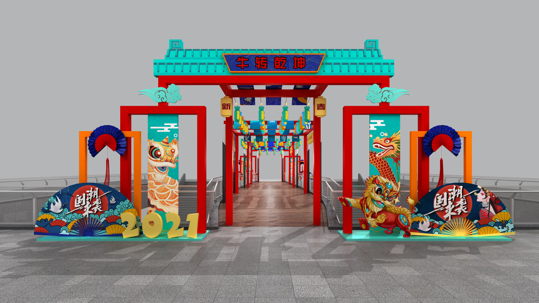 国潮风格商业美陈3D效果图设计 国潮DP打卡拍照点位