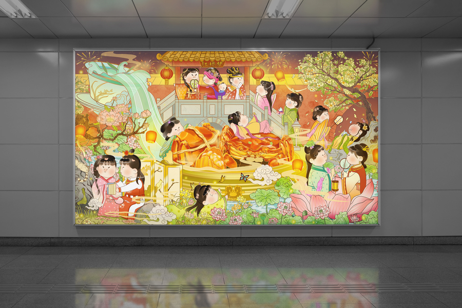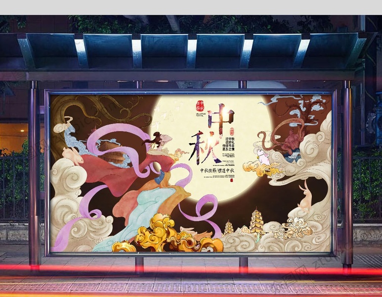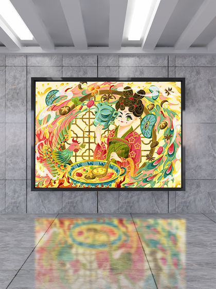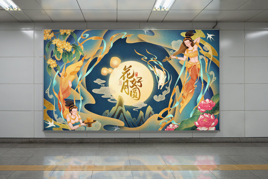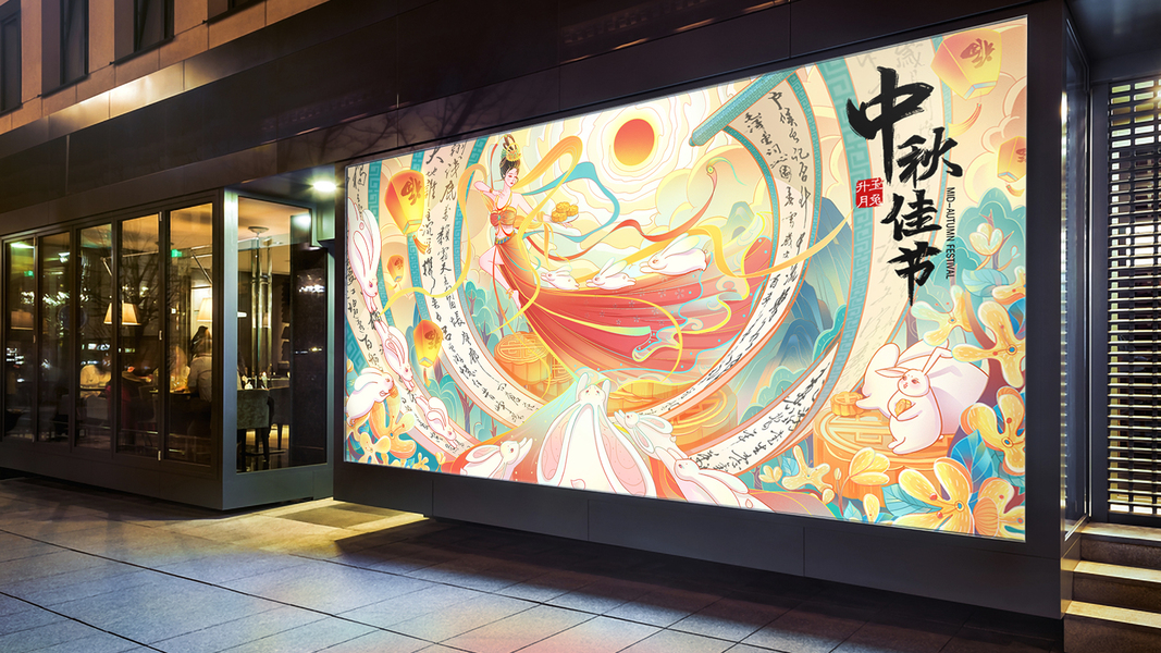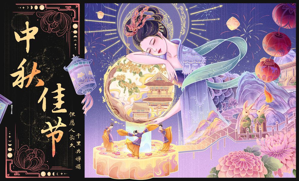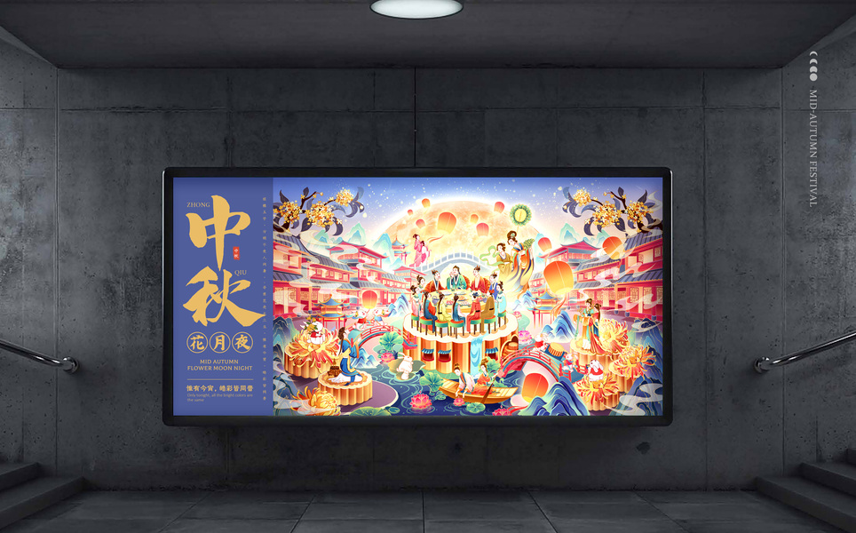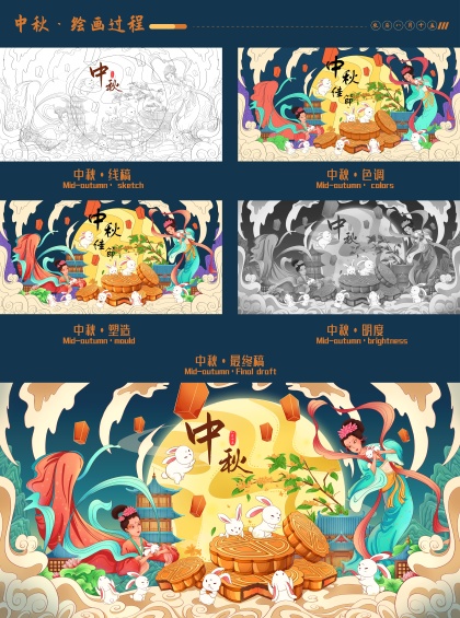 浓情中秋--中秋节国风礼盒包装插画 节日插画设计