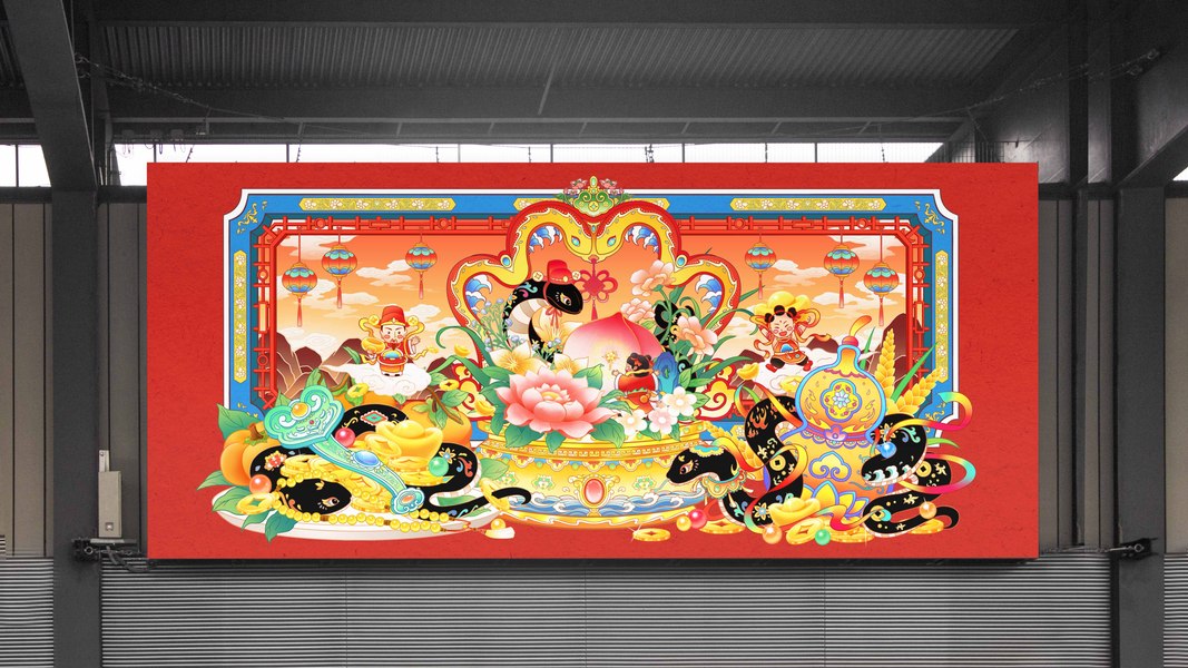 传统节日文化墙、彩绘设计、新农村墙绘素材、乡村墙绘