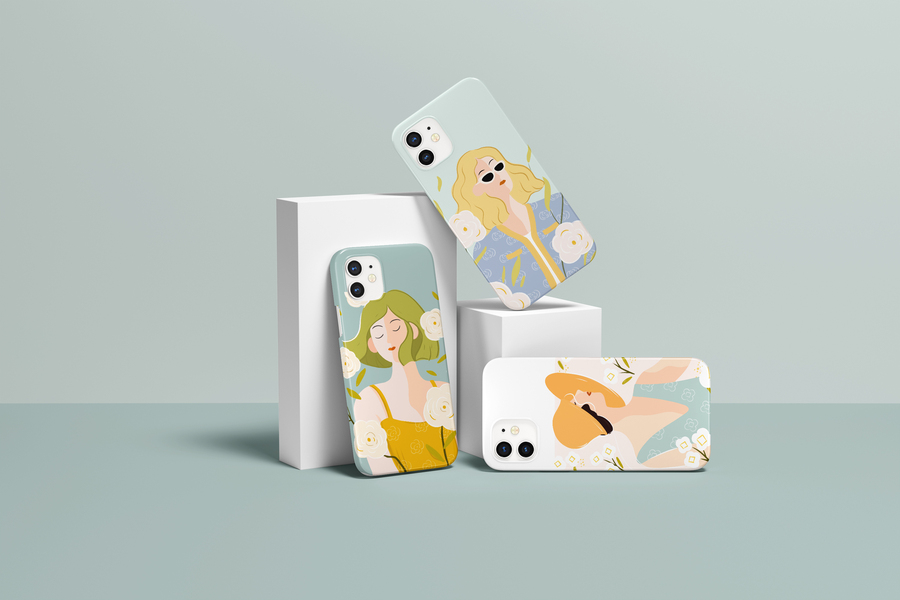 轻奢珠宝插画/茶包装插画/丝巾插画/手机壳插画/装饰画