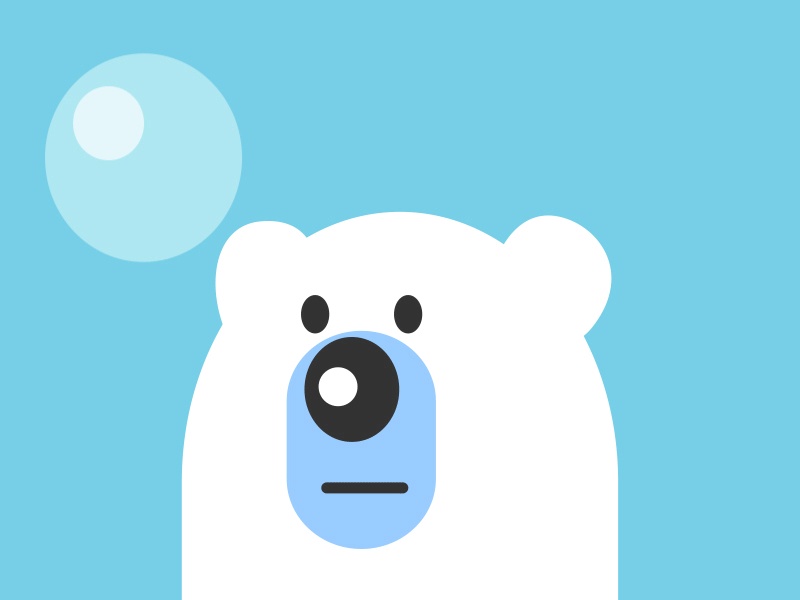 盯着泡泡的小白熊