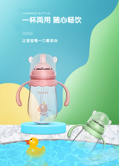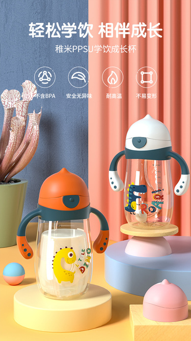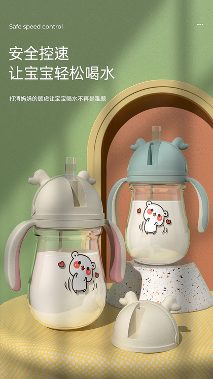 【母婴用品】儿童吸水杯学饮杯渲染 × 详情页设计