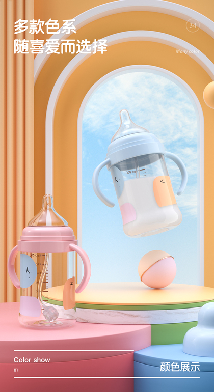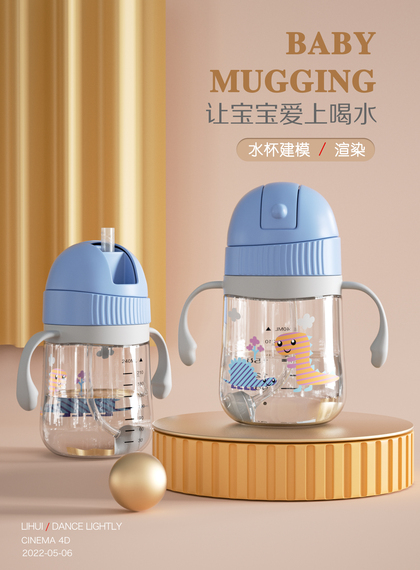 电商母婴三维设计C4D OC,宝宝学饮杯吸管杯婴儿奶瓶