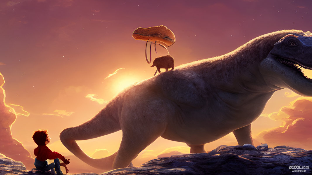 #AI创作实验室#冰河世纪,恐龙和小男孩