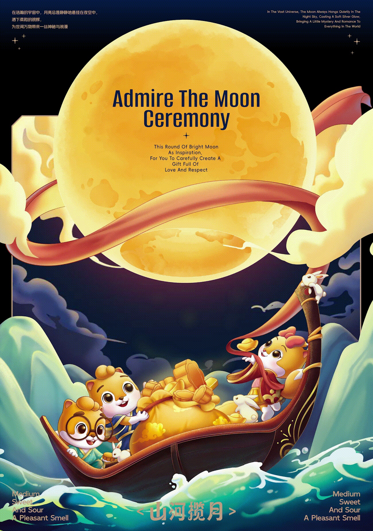 三只松鼠×同道设计 <山河揽月>中秋月饼礼盒包装设计