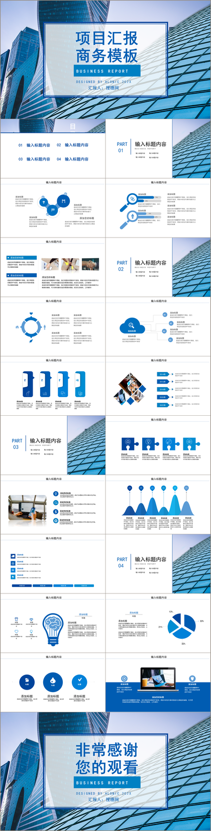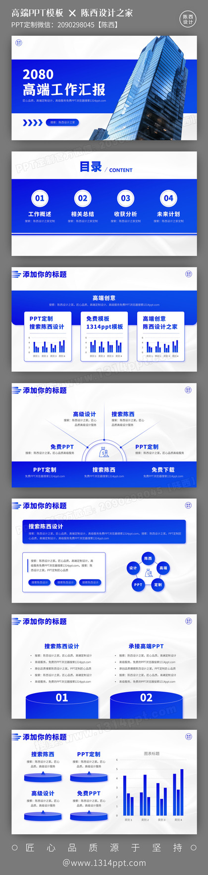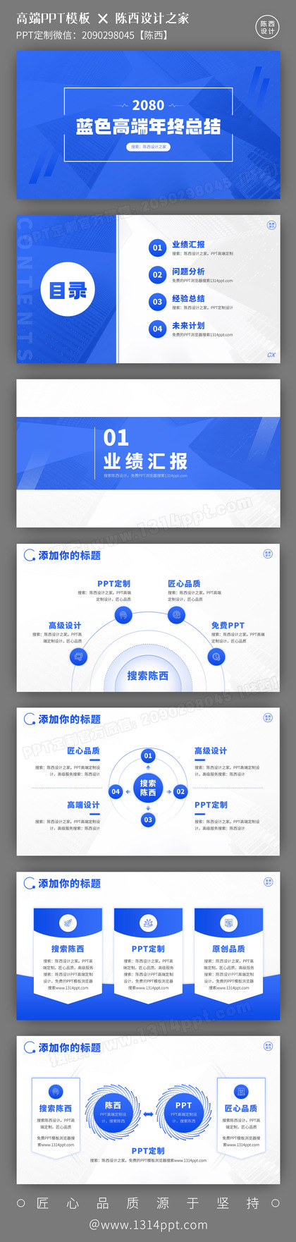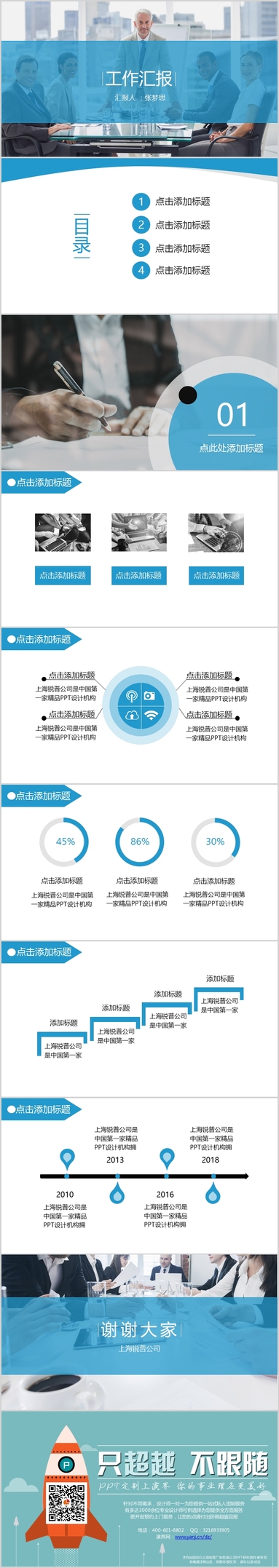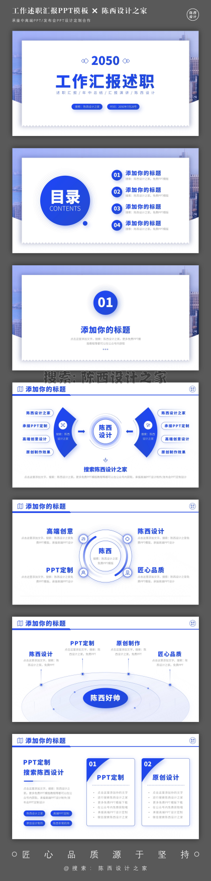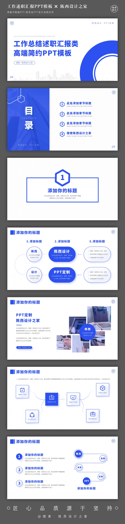 超赞!蓝色系工作总结述职汇报高端PPT模板全套!