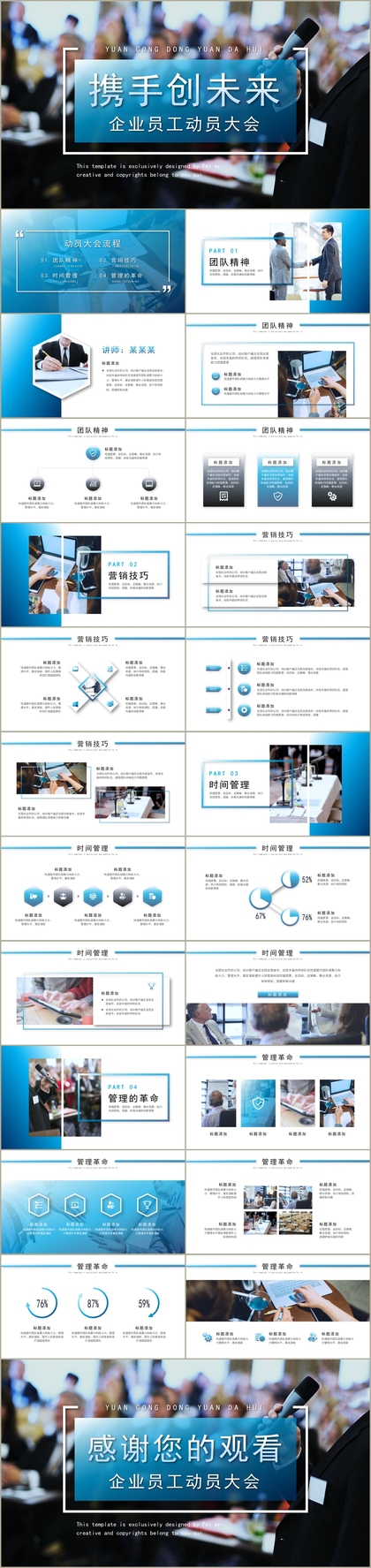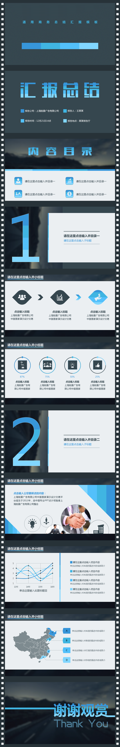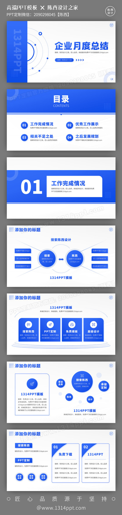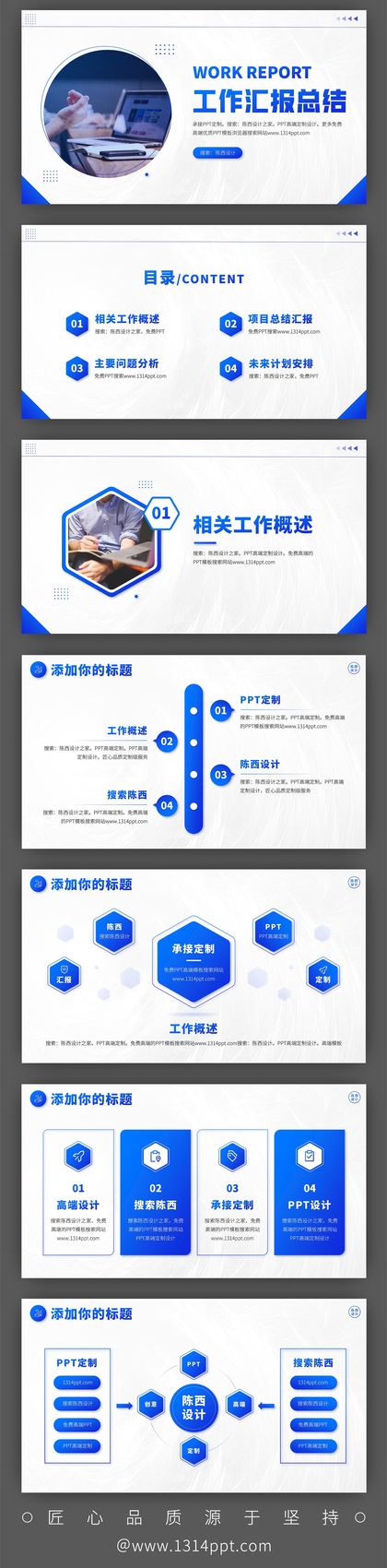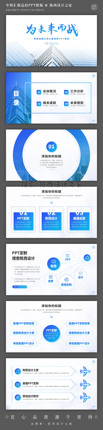 超赞!蓝色系工作总结述职汇报高端PPT模板全套!