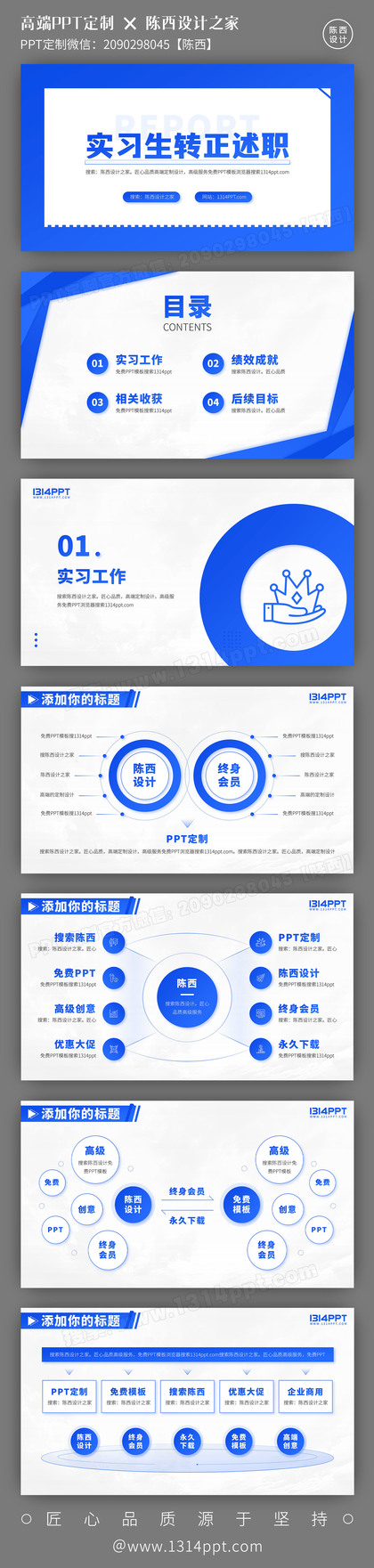 高端蓝色实习生转正述职答辩汇报年终总结PPT模板作品