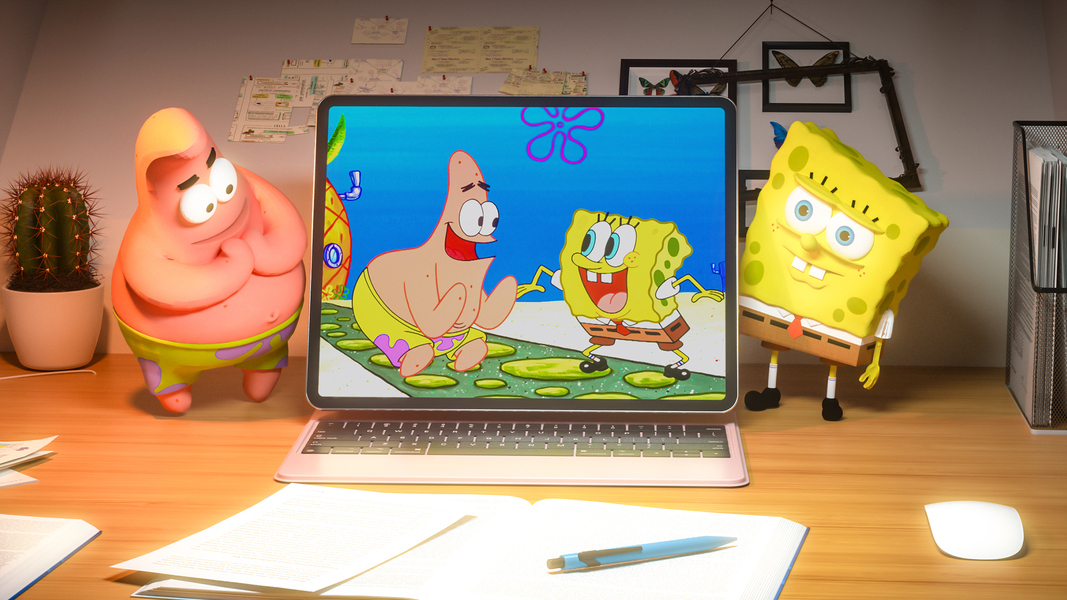 来自比奇堡的客人 | 海绵宝宝和派大星卡通三维渲染