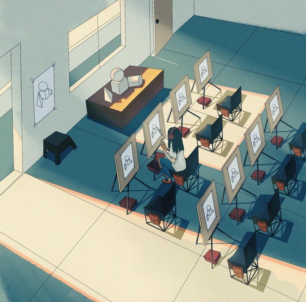2.5D矢量学生教育学校教室学校学习培训UI插画AI设计
