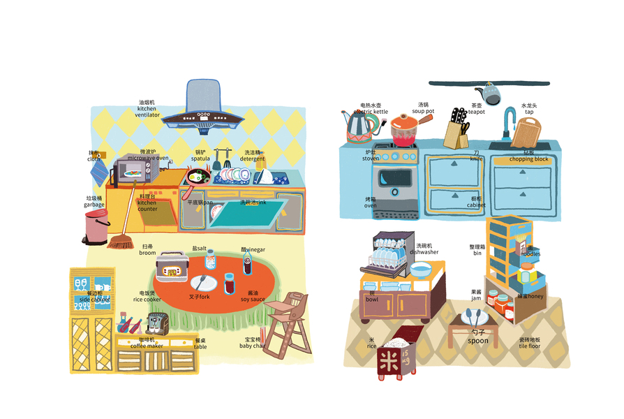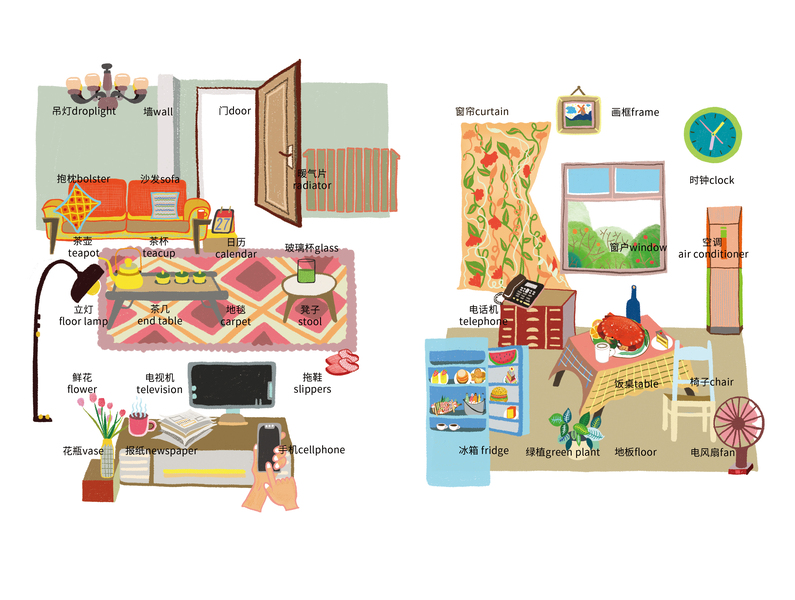 纯手绘创作:单词插画书|我的家