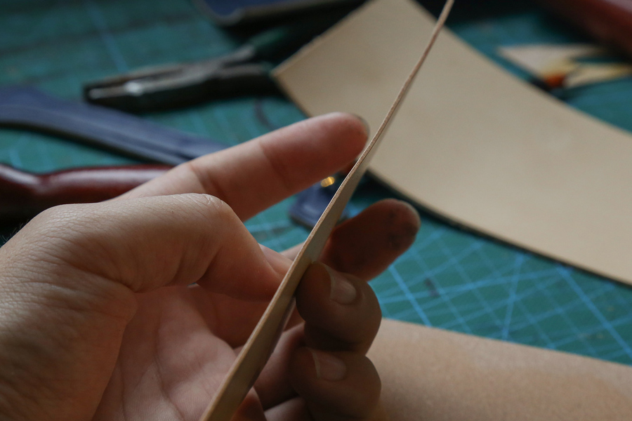 皮具教程-手工染色起鼓手拿包
