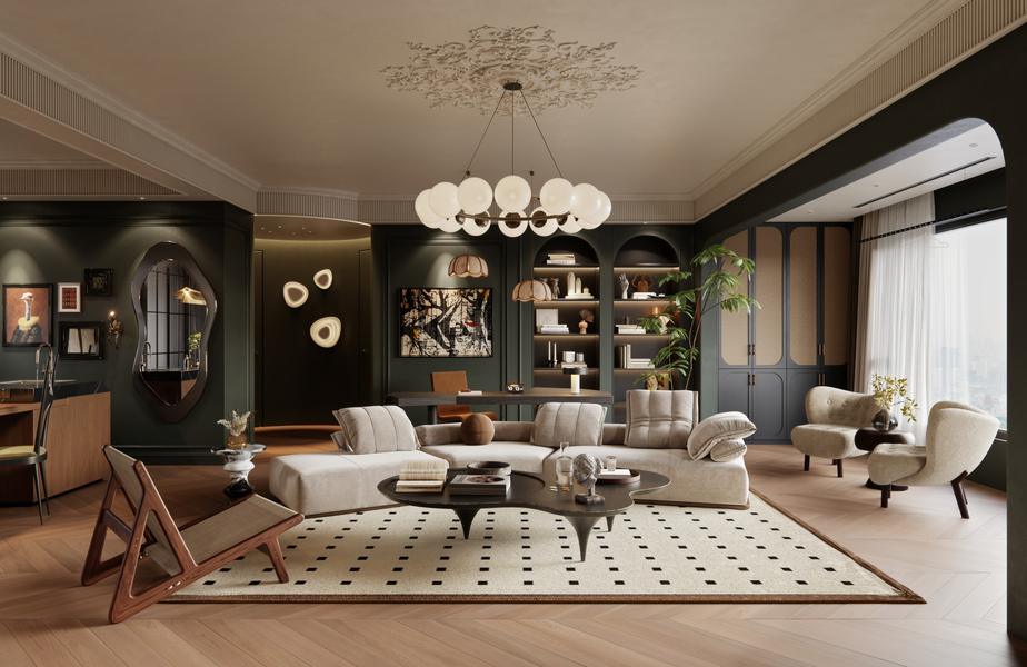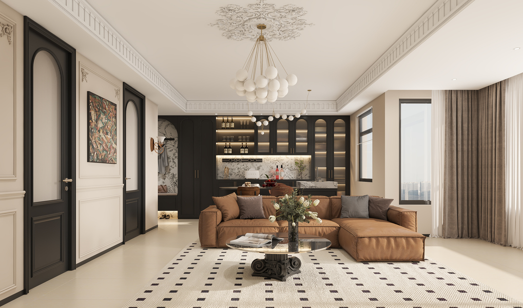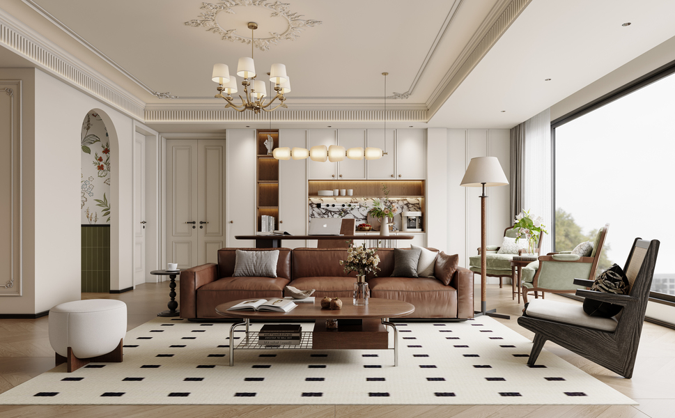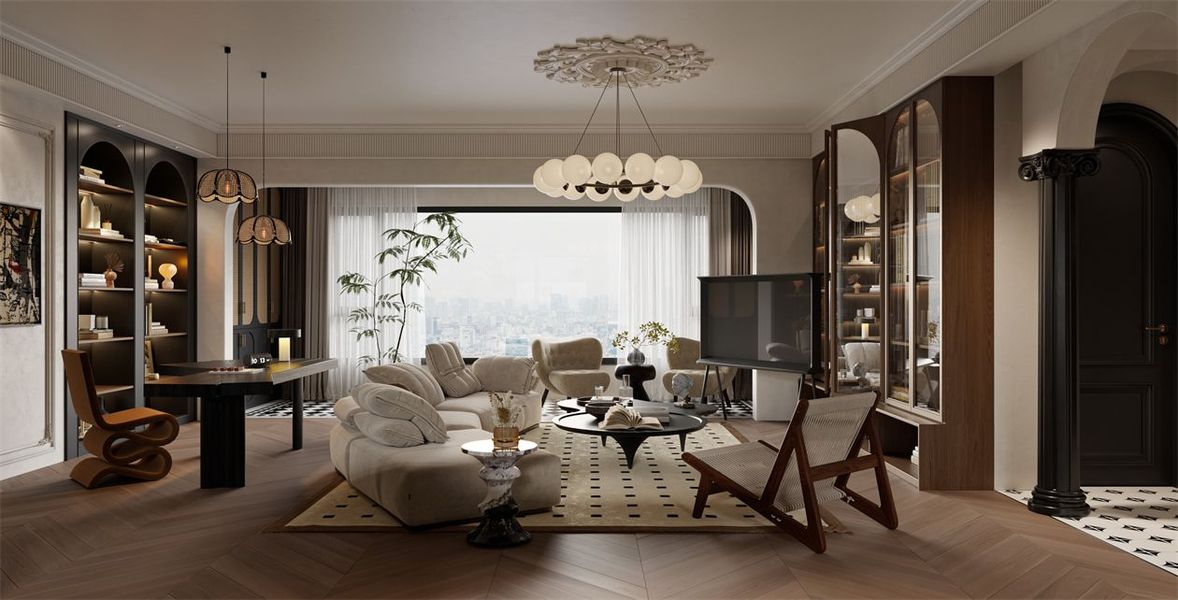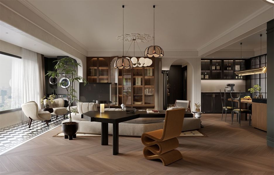 法式中古风客餐厅案例—择木创建新晨效果图