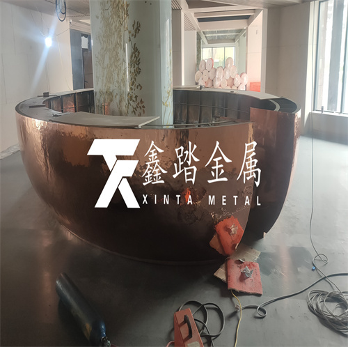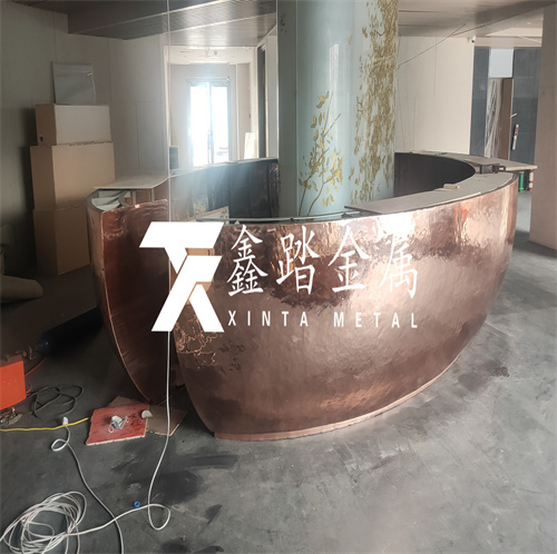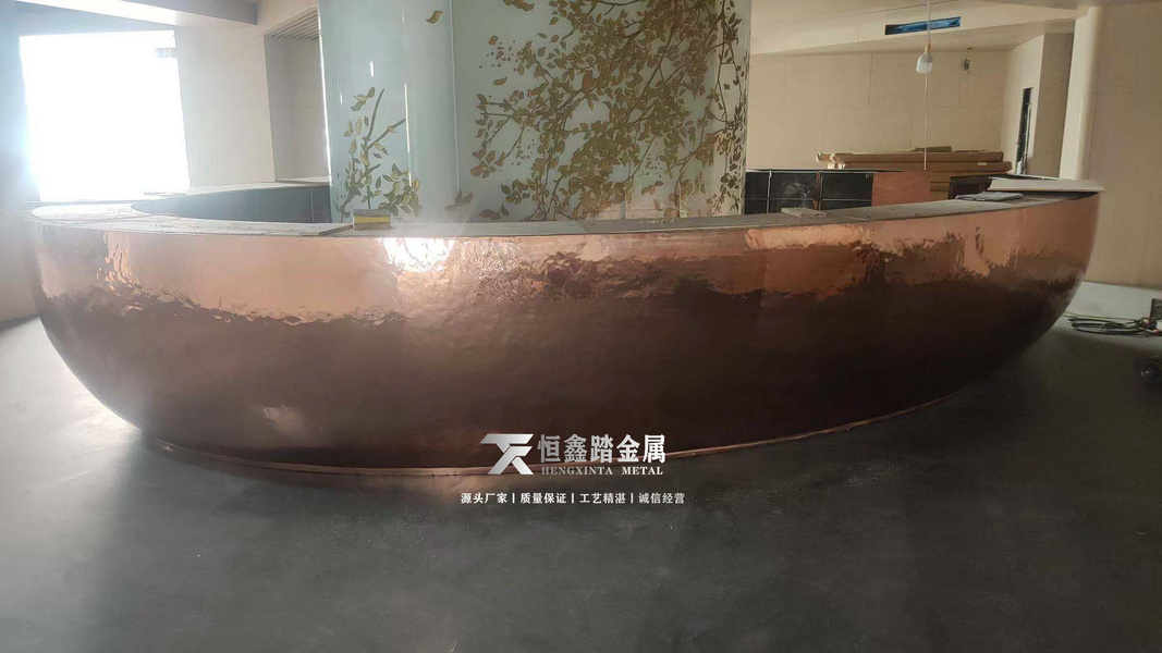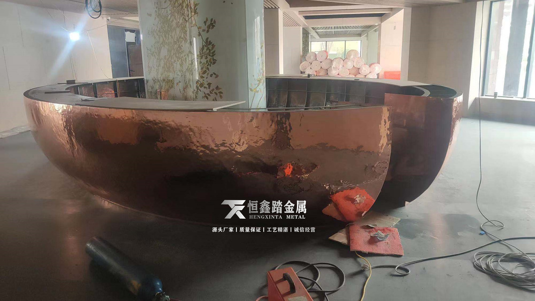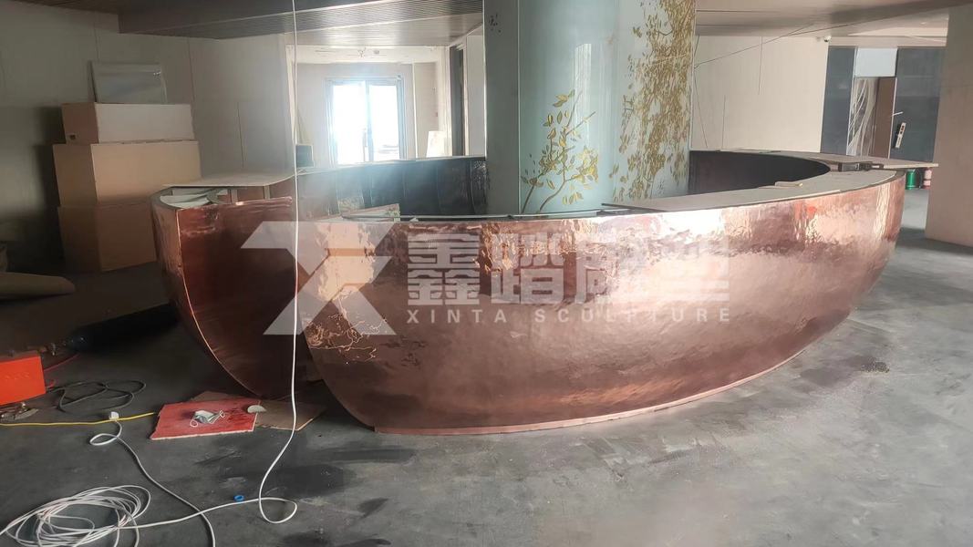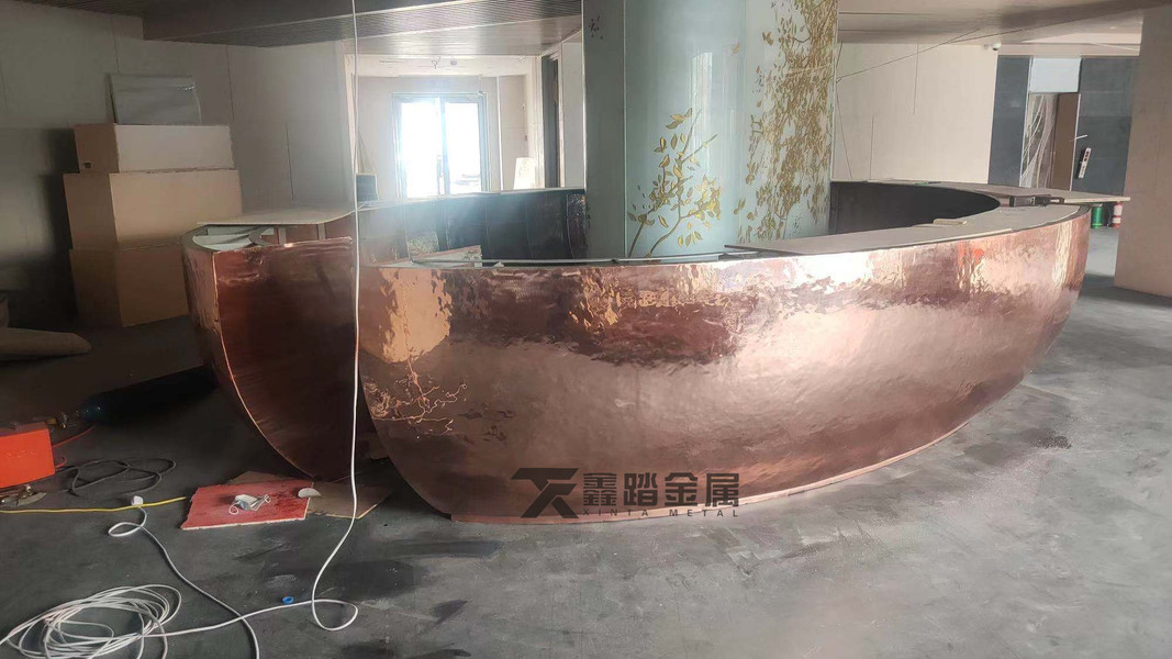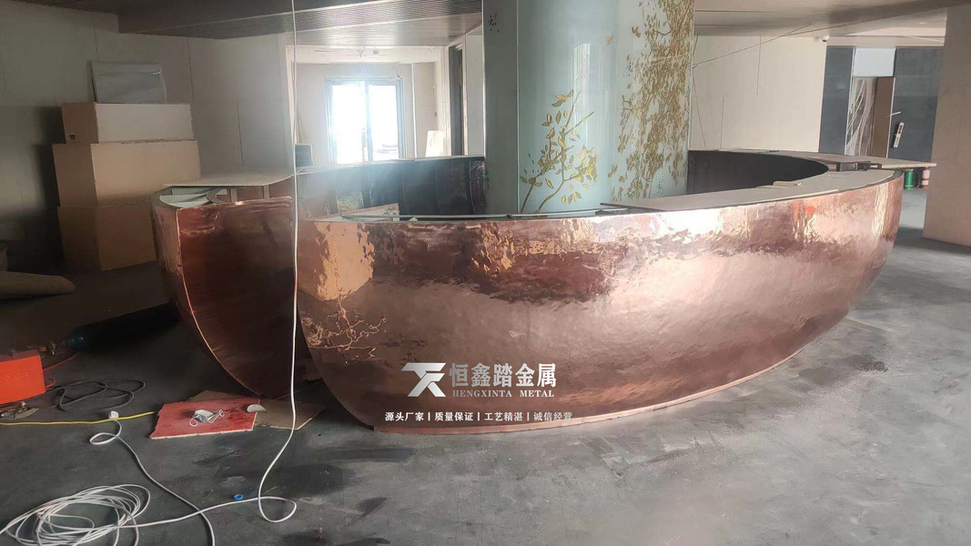 宝格丽大型紫铜锤纹吧台金属艺术接待前台制作流程图片