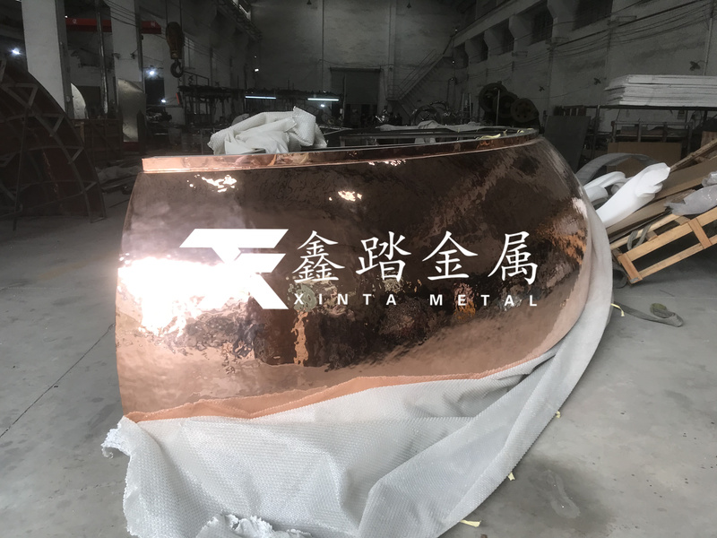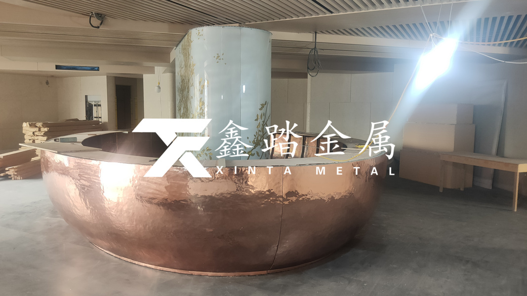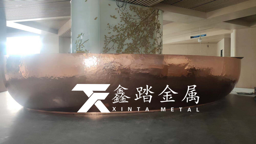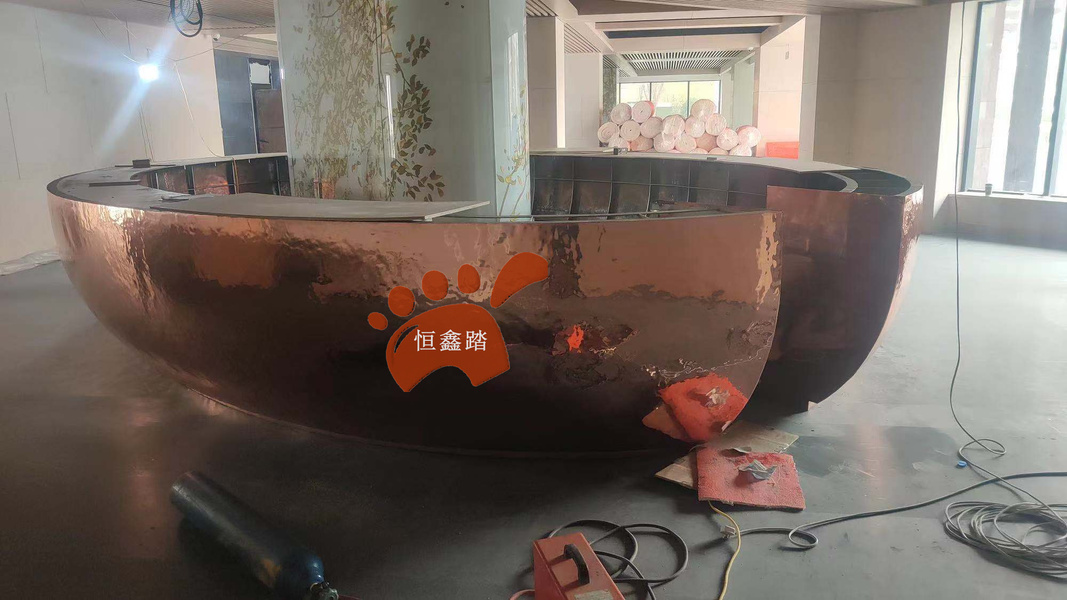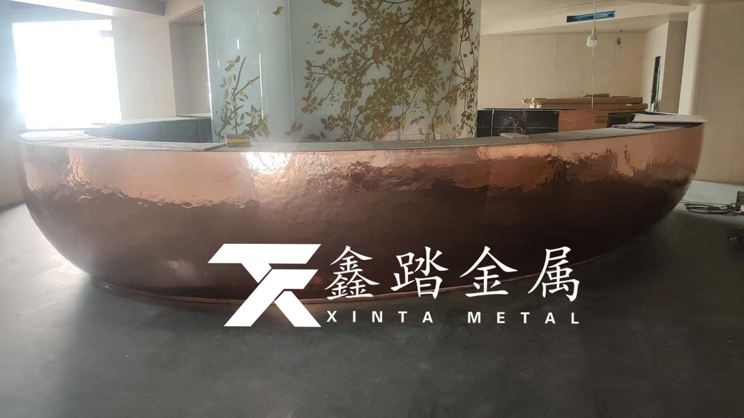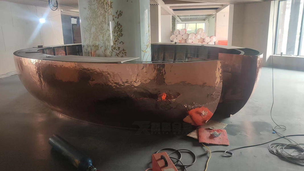 宝格丽大型紫铜锤纹吧台金属艺术接待前台制作流程图片