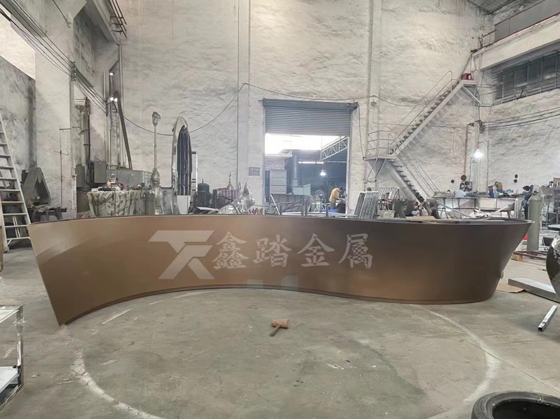 不锈钢镜面吧台、纯手工锻造曲面服务接待台造型效果