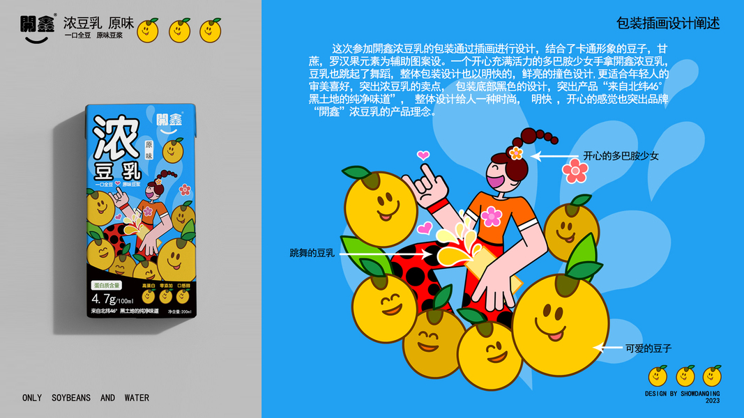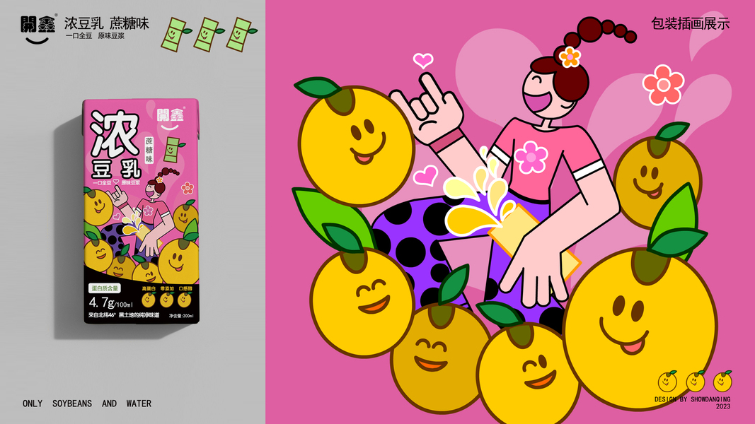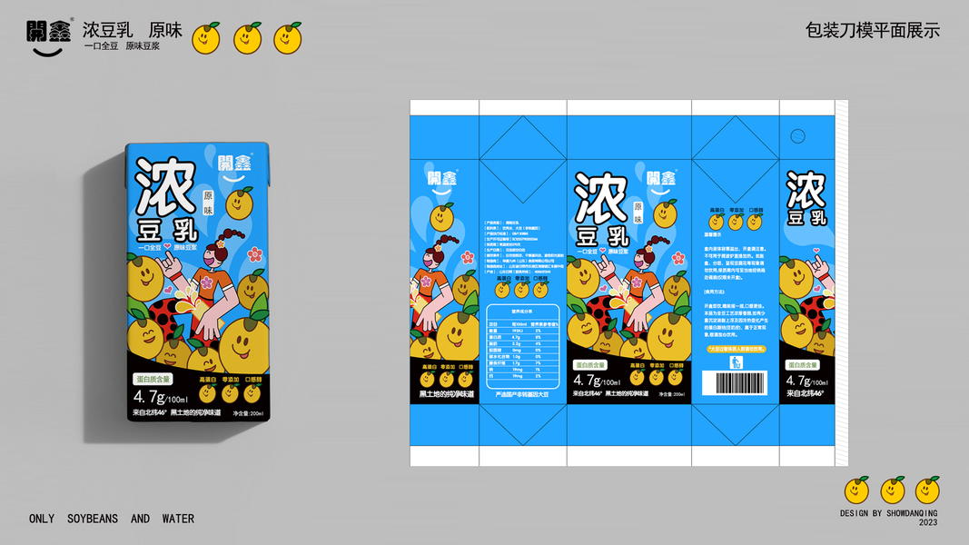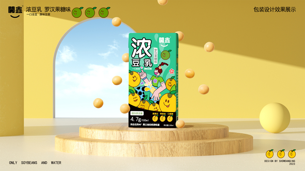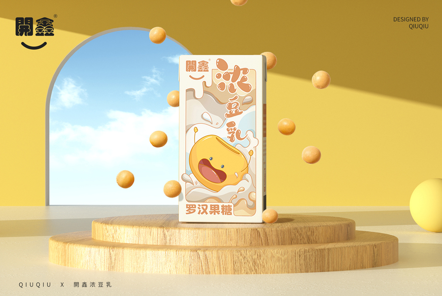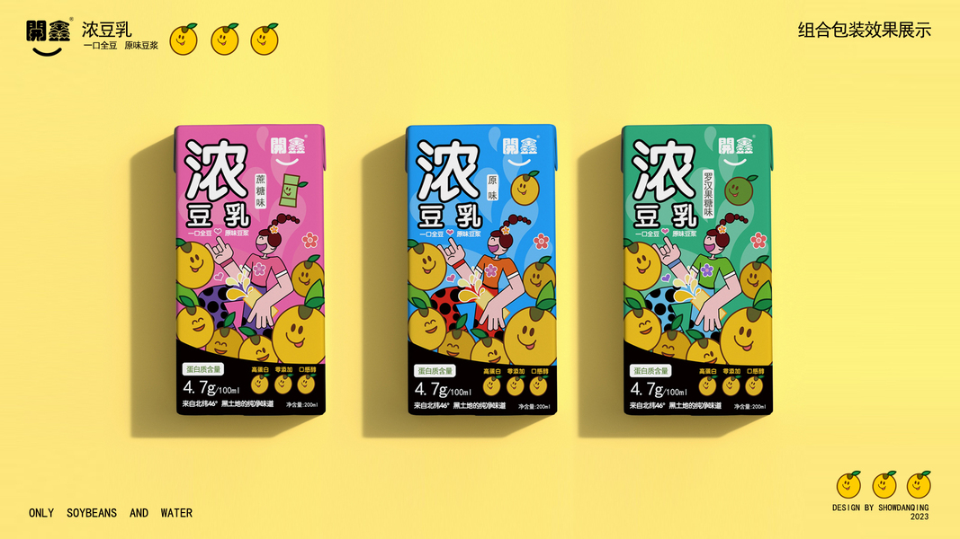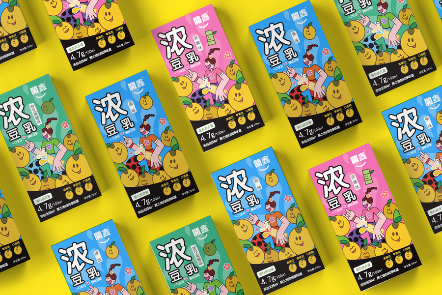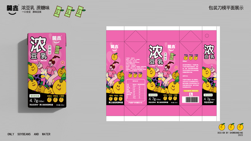 開鑫浓豆乳包装设计丨开心多巴胺豆乳