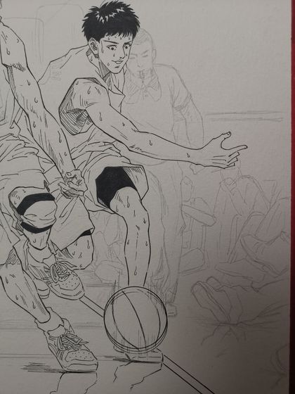 樱木花道和流川枫争抢边线球