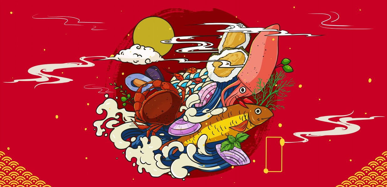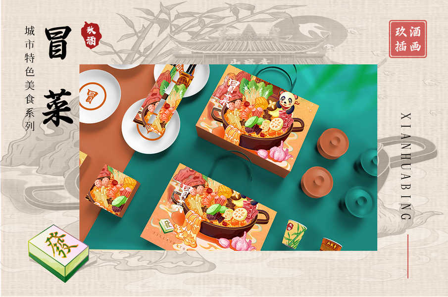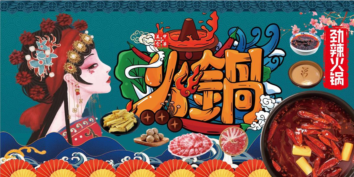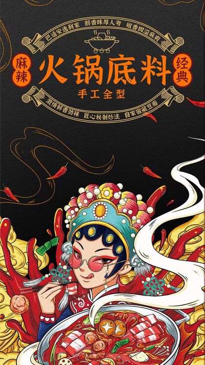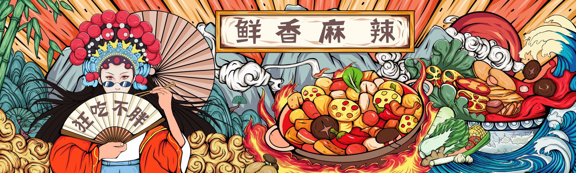 麻辣香锅麻辣烫小吃店国潮风插画
