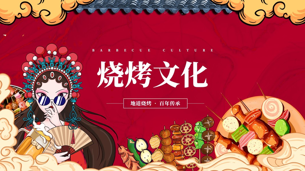免费PPT模板!烧烤串串夜市啤酒餐饮美食PPT模板