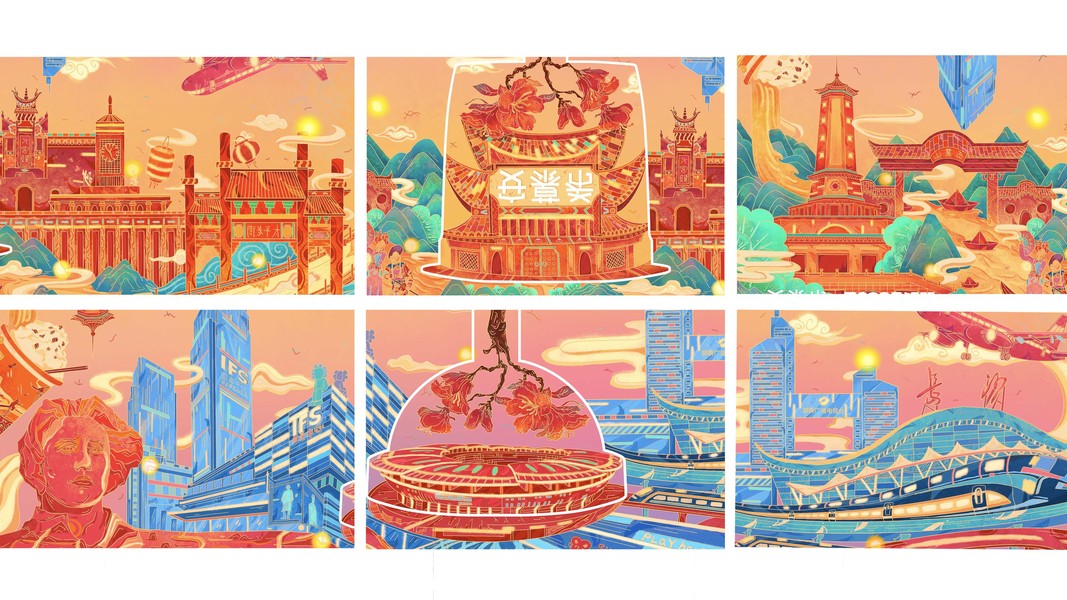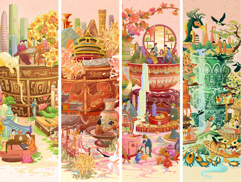 《器皿与城市—北京 广州 深圳 杭州》|国潮插画