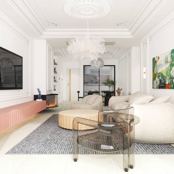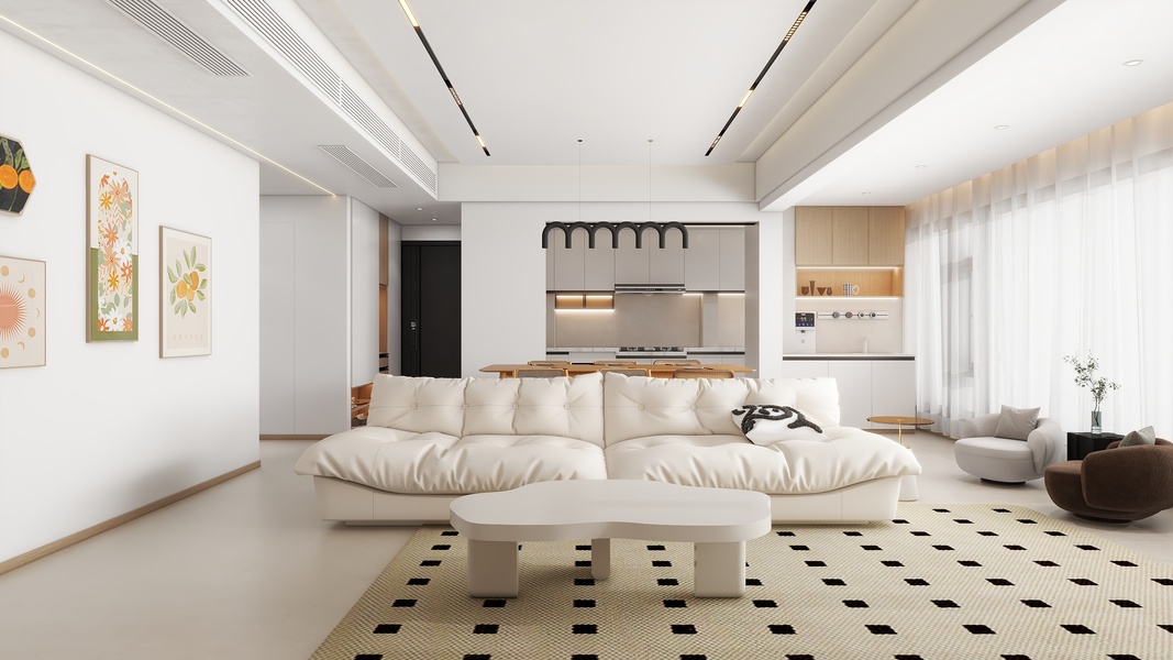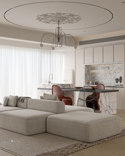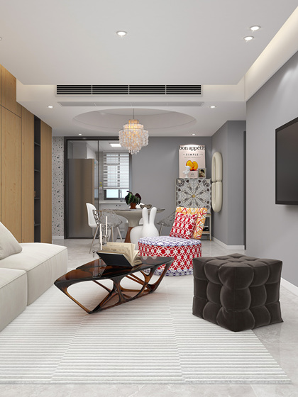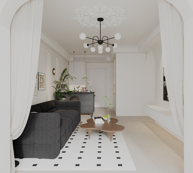 简约法式风格客餐厅效果图设计