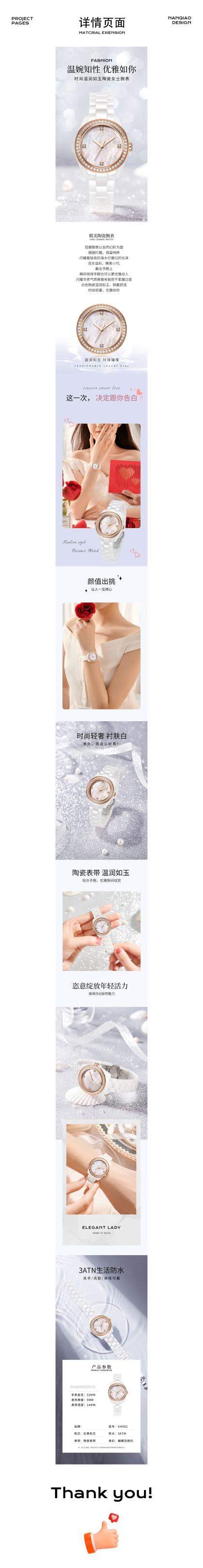 温润如玉时尚轻奢陶瓷手表女表详情页