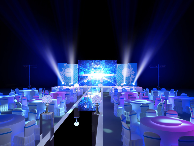 YHwedding婚礼设计:湖蓝LED婚礼舞台3D效果图