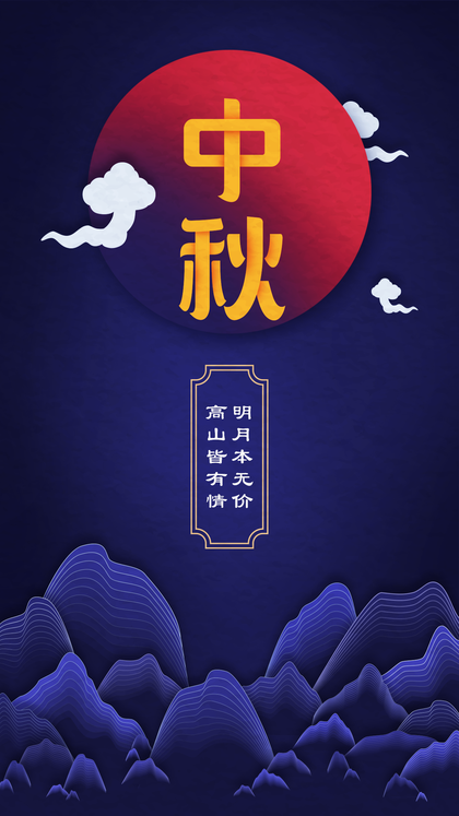 中秋节壁纸闪屏剪纸风明月高山寄相思