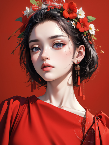 AIGC | 厚涂插画 | 千金肖像 · 绿