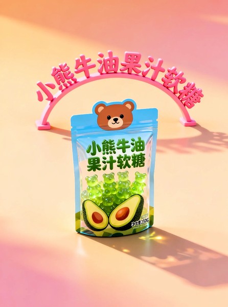 既梦AI设计小熊多种口味果汁软糖产品包装海报设计
