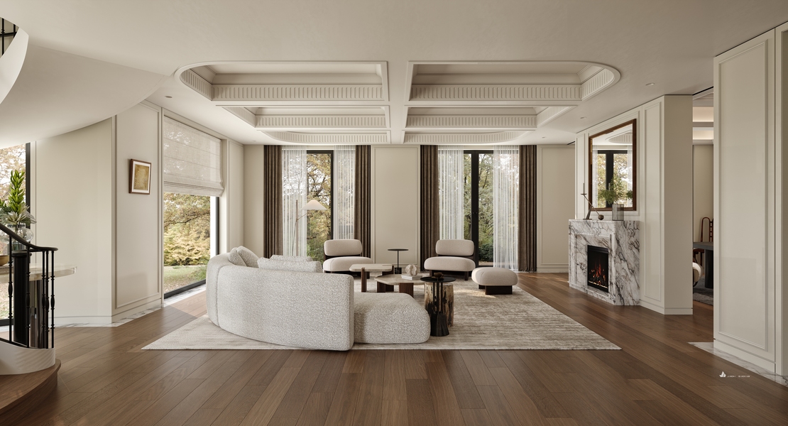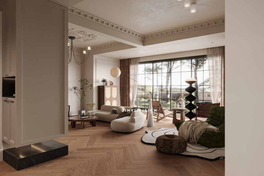 家装设计案例鉴赏——奶油色温柔法式复古别墅设计