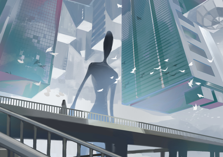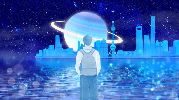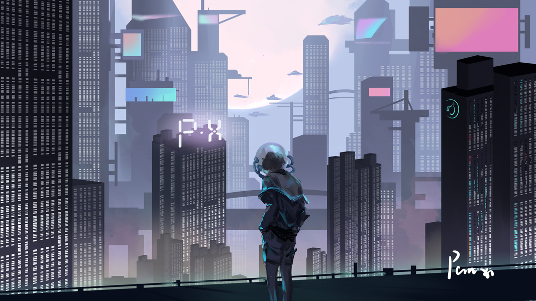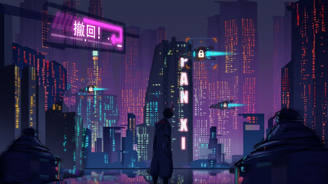 万圣节数字赛博朋克城市夜景数字5G芯片科幻节日概念