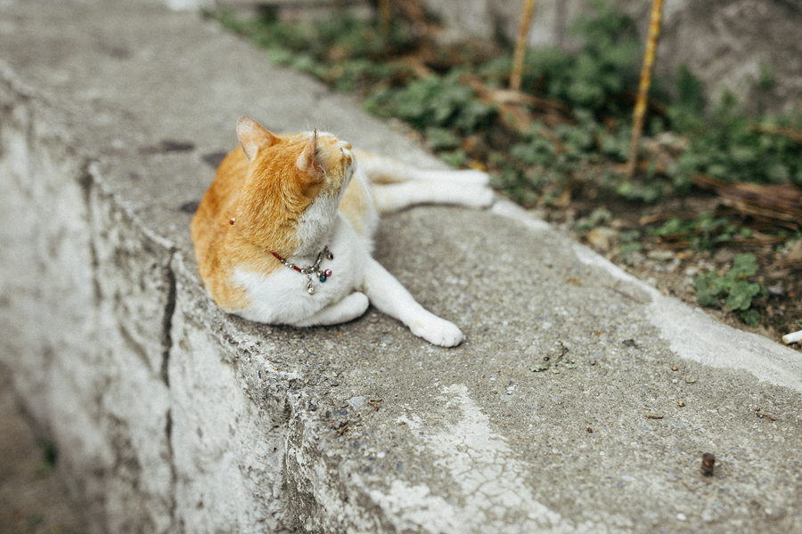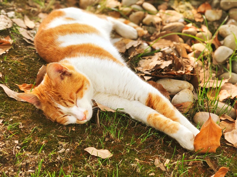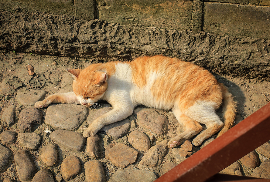 偷得浮生半日闲,寺庙内一只享受佛光蔽荫的喵