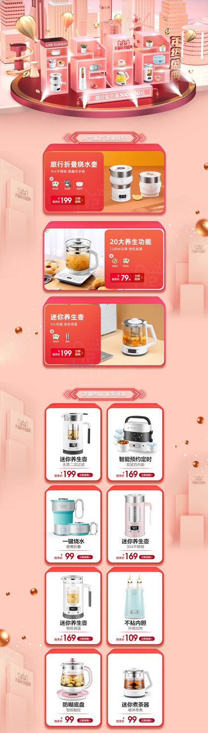 小熊电器 双12首页 承接页 自定义页 国潮 红色大促